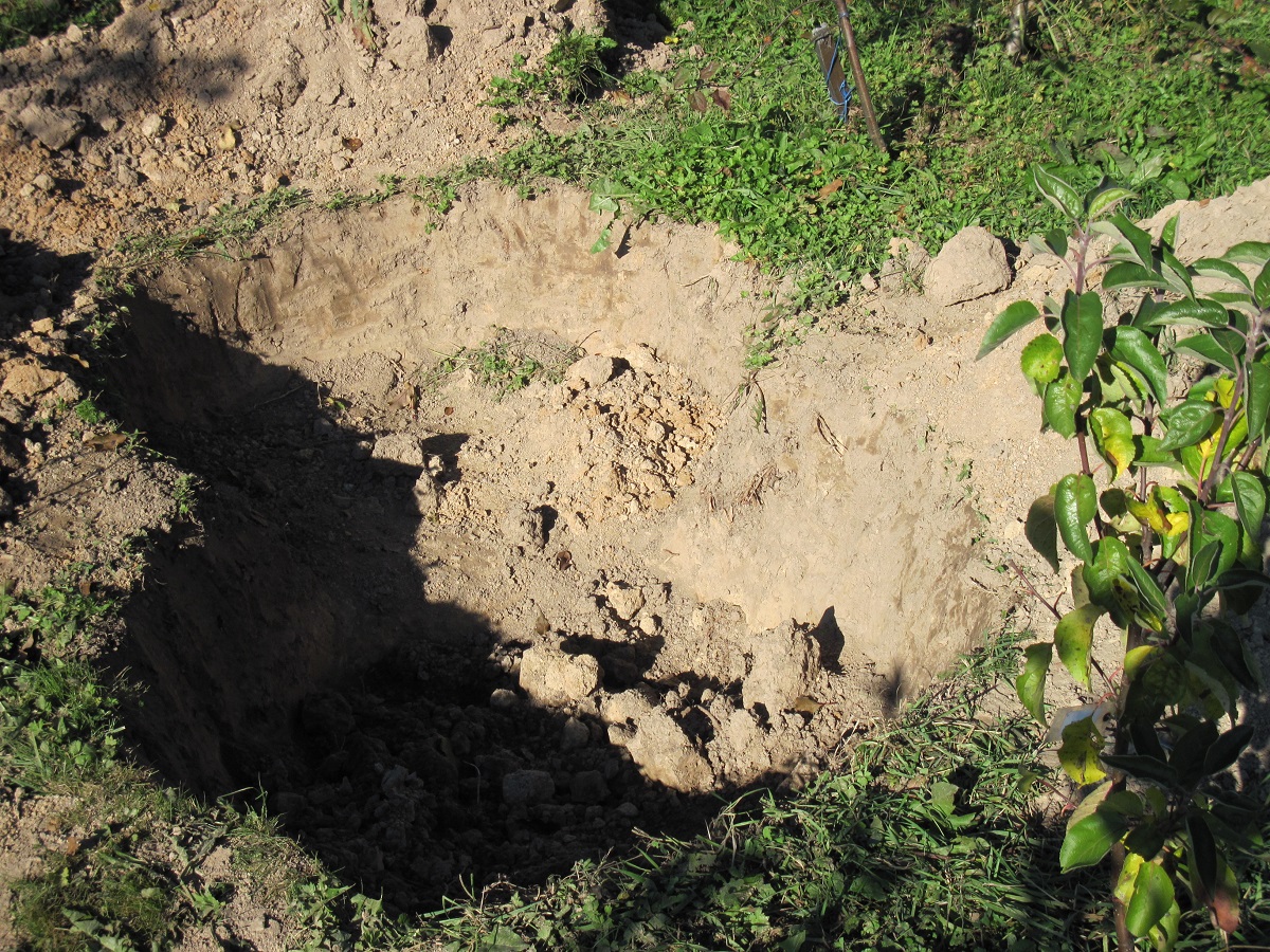 Вот такие котлованы получаются Если последовательно о процессе, то встаем очень рано. Под каждое предполагаемое для выкопки дерево по пять ведер воды. Завтракаем и за работу. В планах до обеда выкопать пяток деревьев.