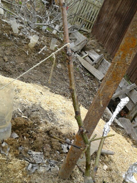 Хорошо перезимовала прививка Флейты – есть один ожог на двулетней древесине, но это не мешает распускаться почкам на однолетней.