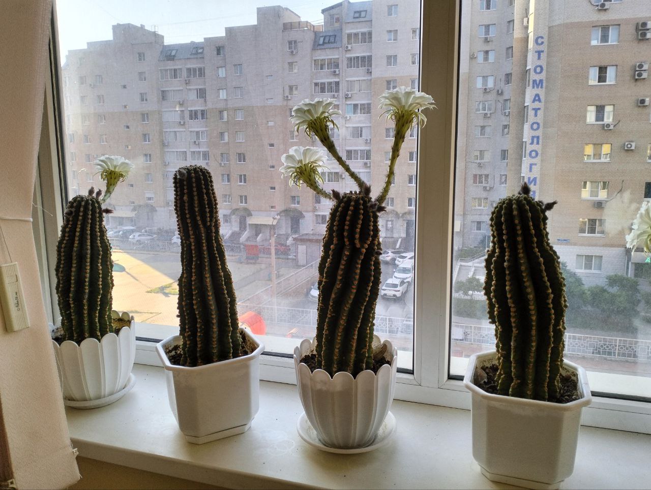 Оля! Ничего специального для них не делала( не до них,).при пересадке в более большие горшки, намешала природный гоунт с грунтом Питер Пит( универс), да песочка побольше туда. Добавила щепоть нитроаммофоски, совсем мало. И перевалила их ( тот еще квест колючий). Окно у нас для них правильное. Зимой очень прохладное, летом жарища несусветная. Поливаю зимой Ооочень редко, по весне начинаю побольше поливать и удобренькой фертика универс пару раз. В начале лета начинают бутониться, тут их подкармливаю удобрением Лук-чеснок. ( Калий, фосфор). Ну и все. Цветут по три( четыре) раза за лето. И ффсё, и весь год колючками стоят.