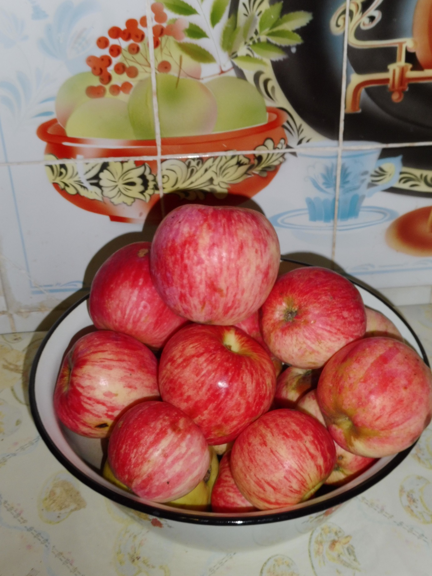 . Оказалось, что яблоки начинают опадать только в сентябре. В этом году начали опадать в августе, дети приезжали на эти выходные хотели их оборвать, а только четверть оборвалась, остальные висят крепко, но зреют и опадают по не многу. Лежат недели две три, вкусные, не кислые, мне восьмой десяток ем с удовольствием, немного полежат становятся рыхлыми ещё слаще. Вкусовые качества описать не могу, у меня всё просто только кислое, сладкое, горькое, .... . Много фото, извините: