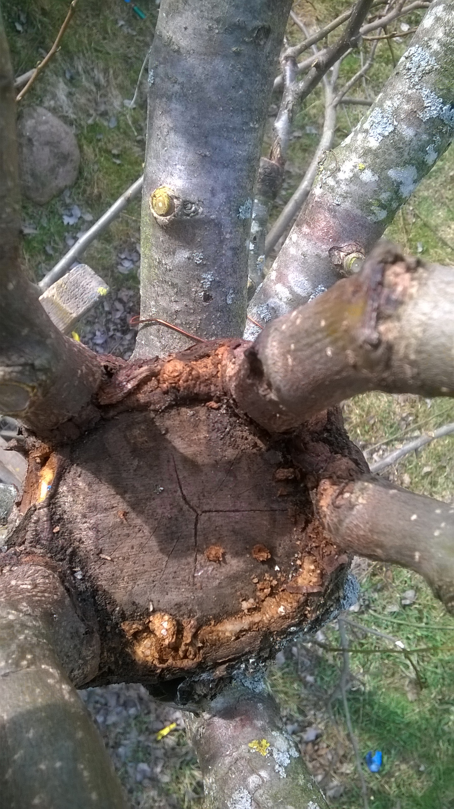 Марина71, ЦП надо еще определить,т.к. за щеткой волчков его не видно.В таких случаях надо произвести обрезку,затем перепривить нижний ярус.Пробовал перепривить многолетнюю ветвь с концов,в подходящие по диаметру второго порядка ветви.В следующем сезоне наделал окулировок на близлежащие к ЦП.В итоге в росте выровнились,на данный момент нормальная скелетная ветвь.
