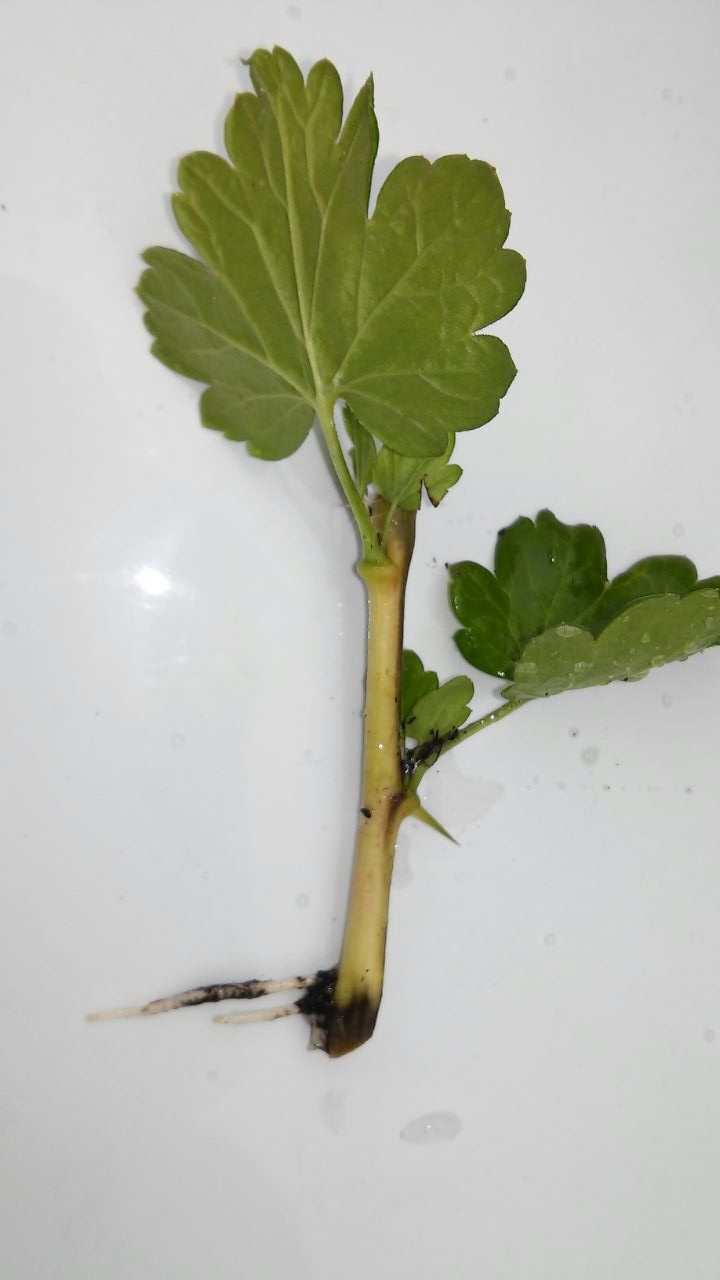 Предварительные результаты: Смородина (как и ожидалось) - прекрасно укоренилась, крыжовник - хуже, но корни есть!
