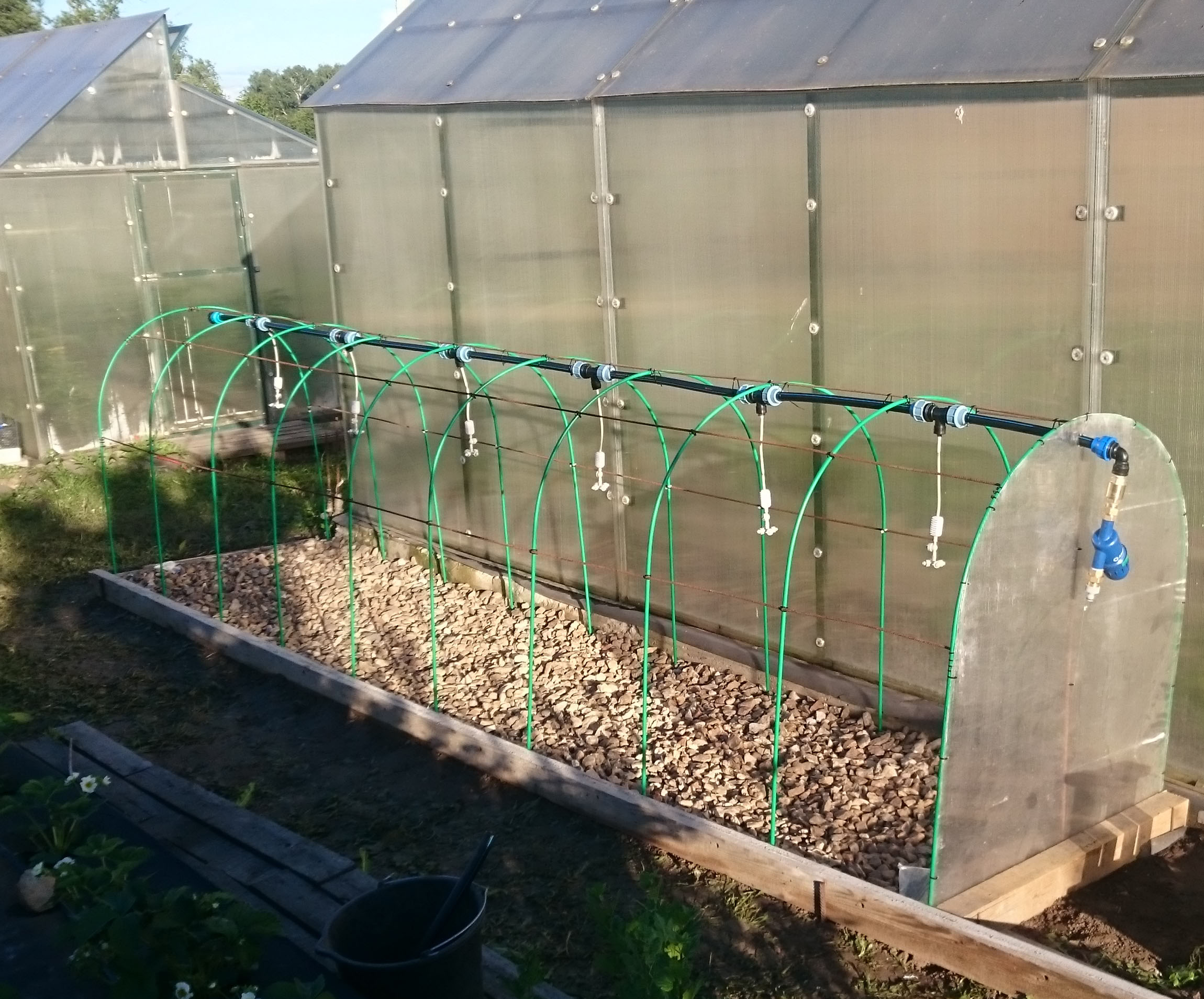 Череночник стоит с северной стороны большой поликарбонатной теплицы. Накрыт агроспаном 60.