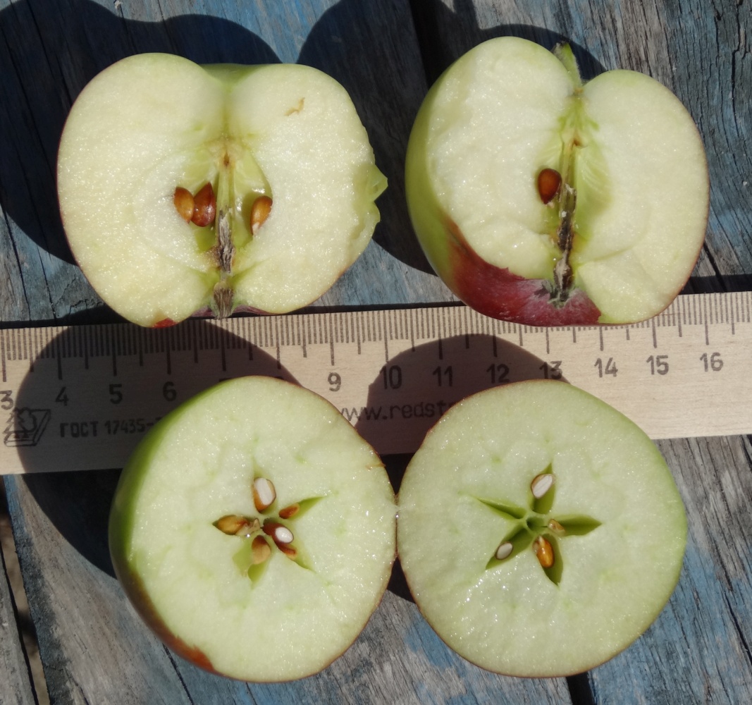 Вчера упали 2 яблока с Аркаима, провёл дегустацию. При разрезании до половины, яблоко с хрустом лопнуло, как спелый арбуз. Мякоть очень сочная, с хрустом, но не плотная, не волокнистая. Вкус сладкий-кисло-сладкий. Кожица тонкая, но прочная.