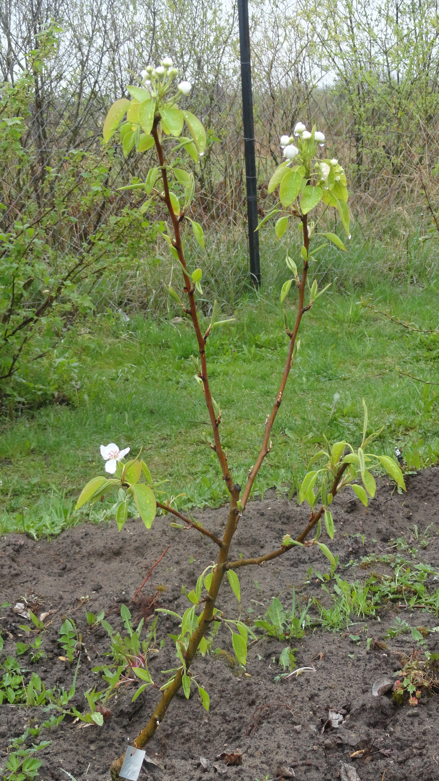 Мне понравился вкус летней груши, срезал черенок. Свободного грушевого подвоя не было -привил в августе глазком на сеянец яблони. Весной взял черенки, а "остов" не стал выкапывать- оставил" на выживание". Так выглядела весной прошлого года: Что пыталось завязываться-удалил. Понятно, что толку большого с такого "симбиоза" не будут, но несколько груш с этого суперкарлика в этом году надеюсь получить. И, главное сорт сохранил. А еще, сравню вкус сорта на грушевом подвое и на яблоневом.