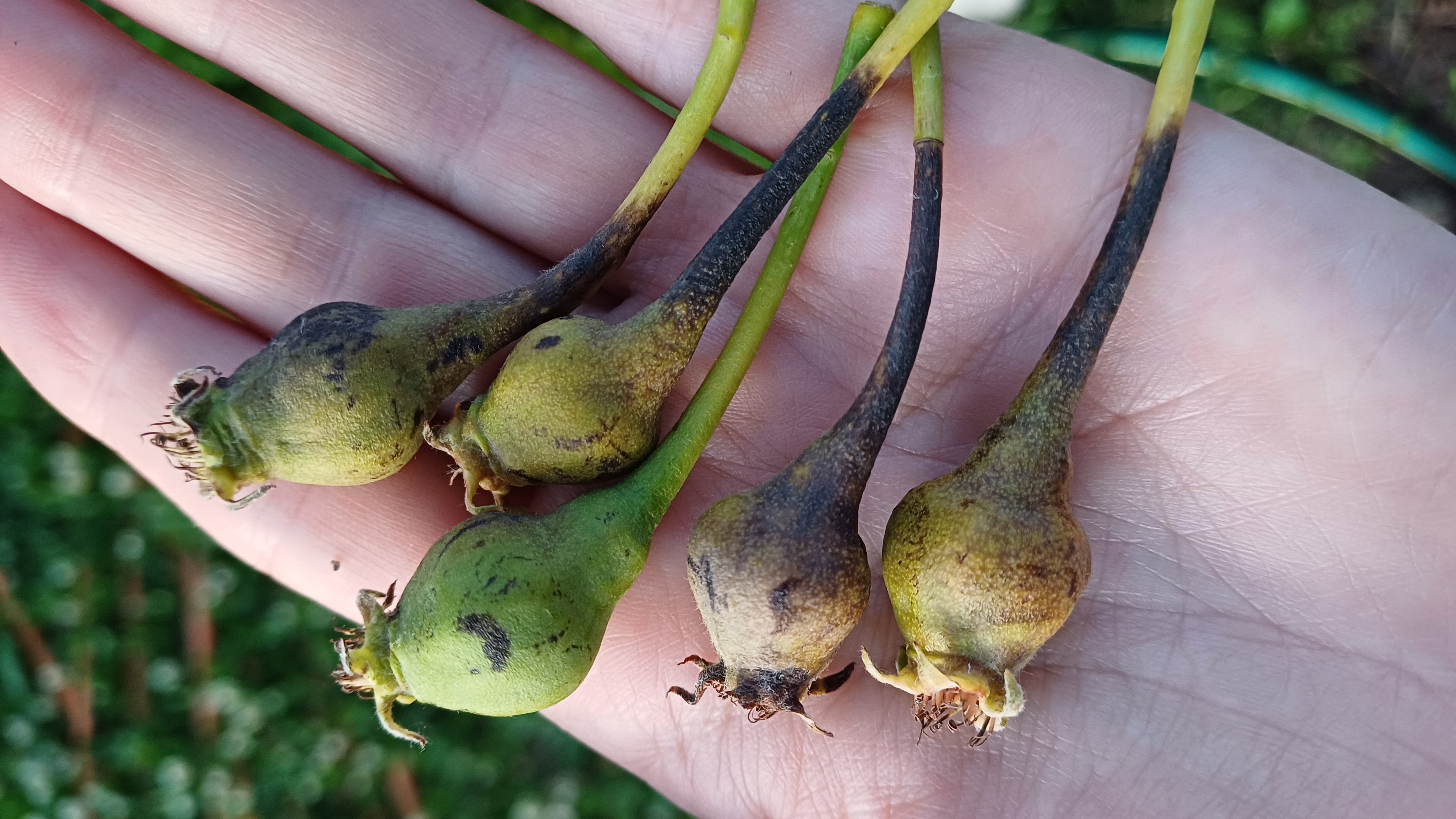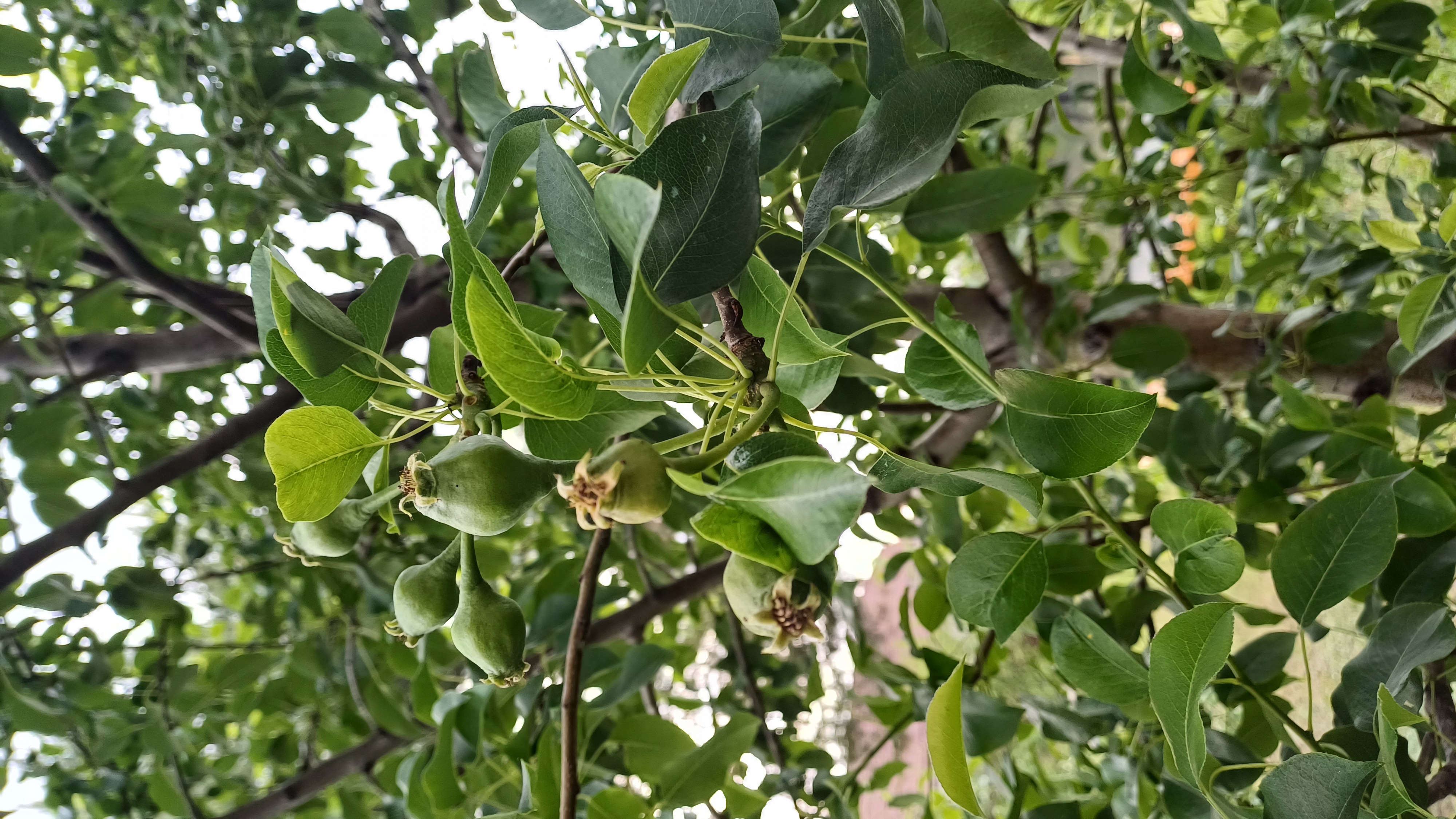 И на одной груше уже 3й год почти все завязи осыпаются, хотя поначалу вроде бы хорошо развиваются. Потом тёмные пятна появляются на плодах, каемка отдельных листьев может чернеть, больше ничего подозрительного не вижу(
