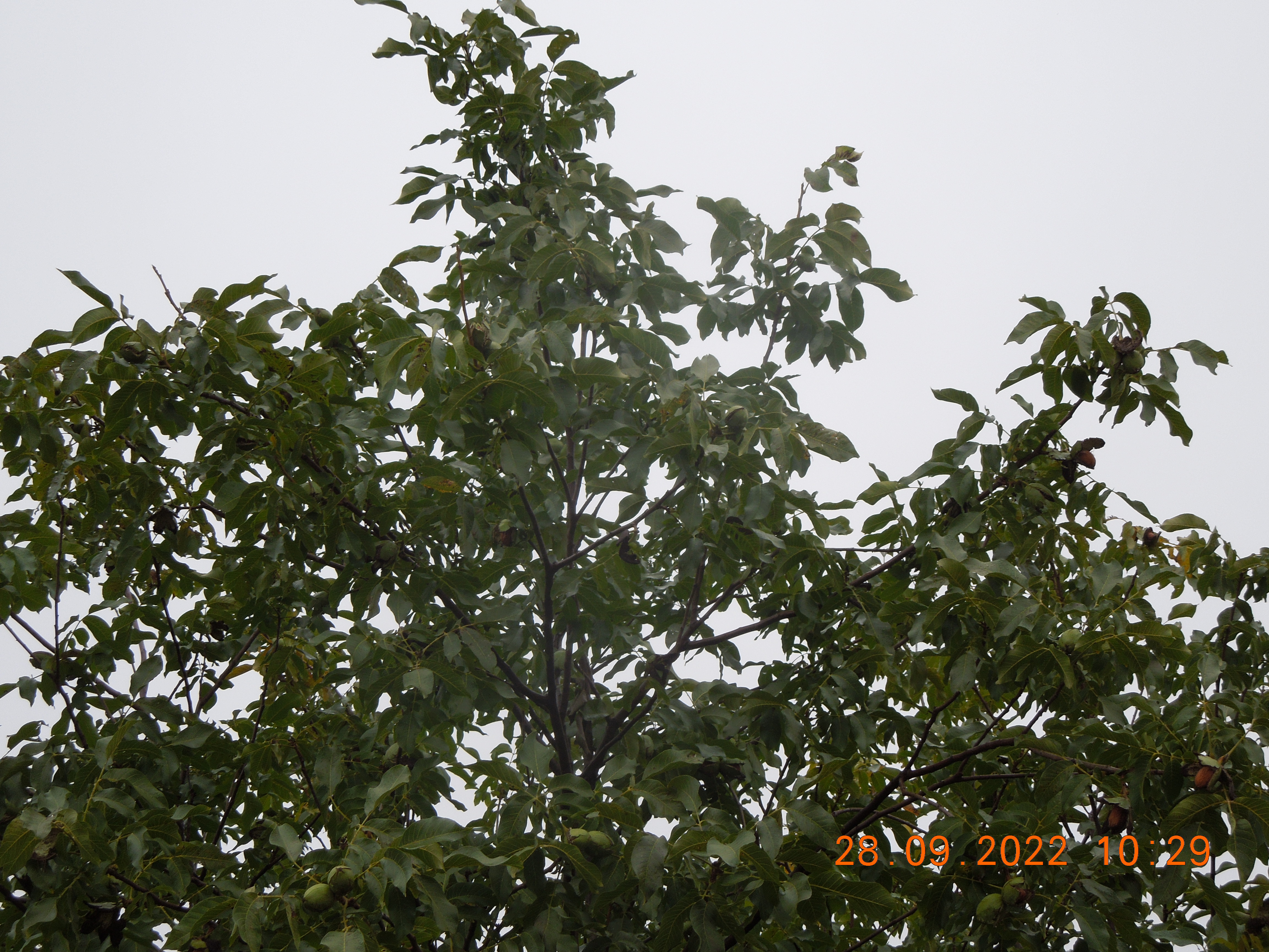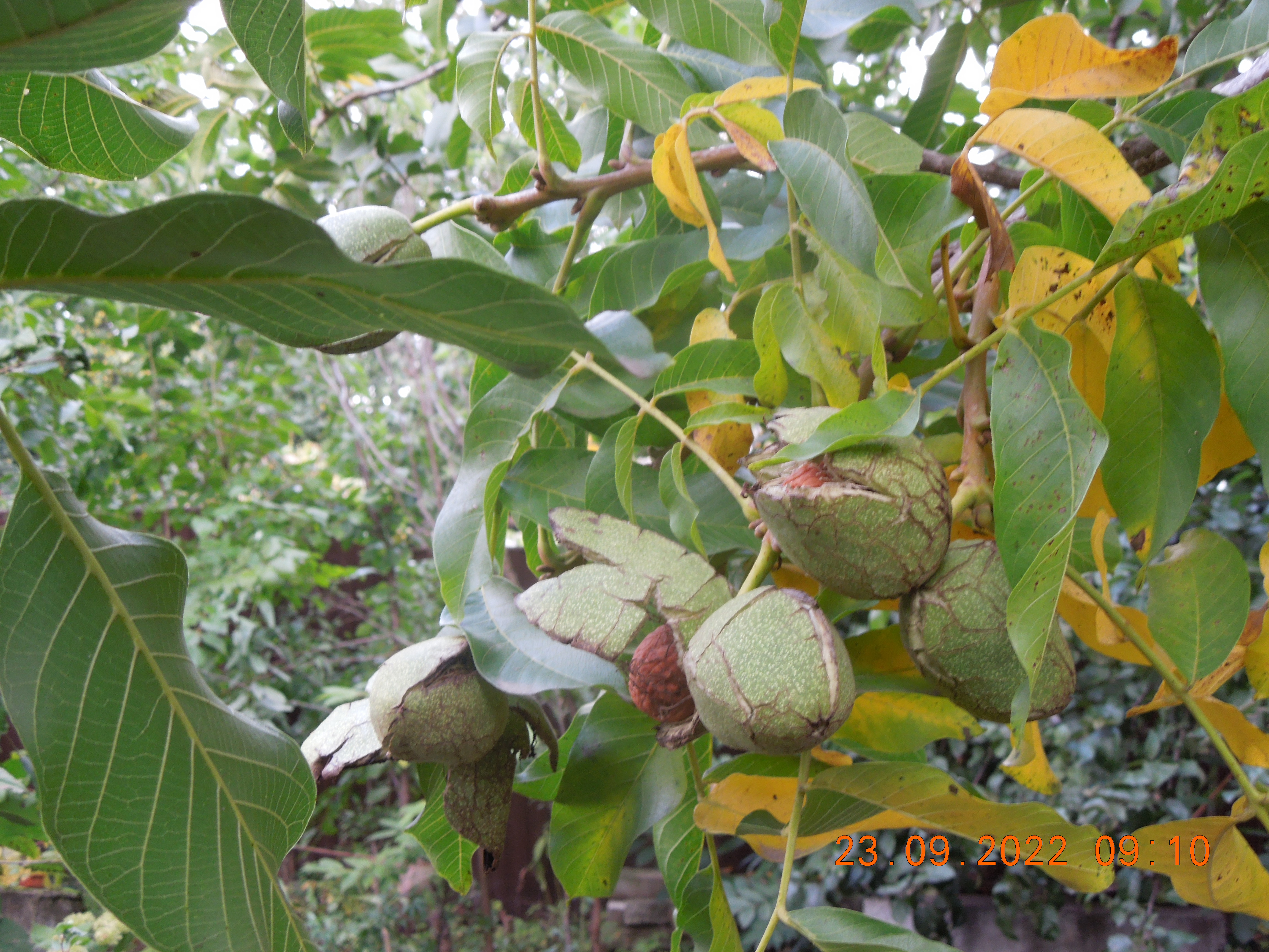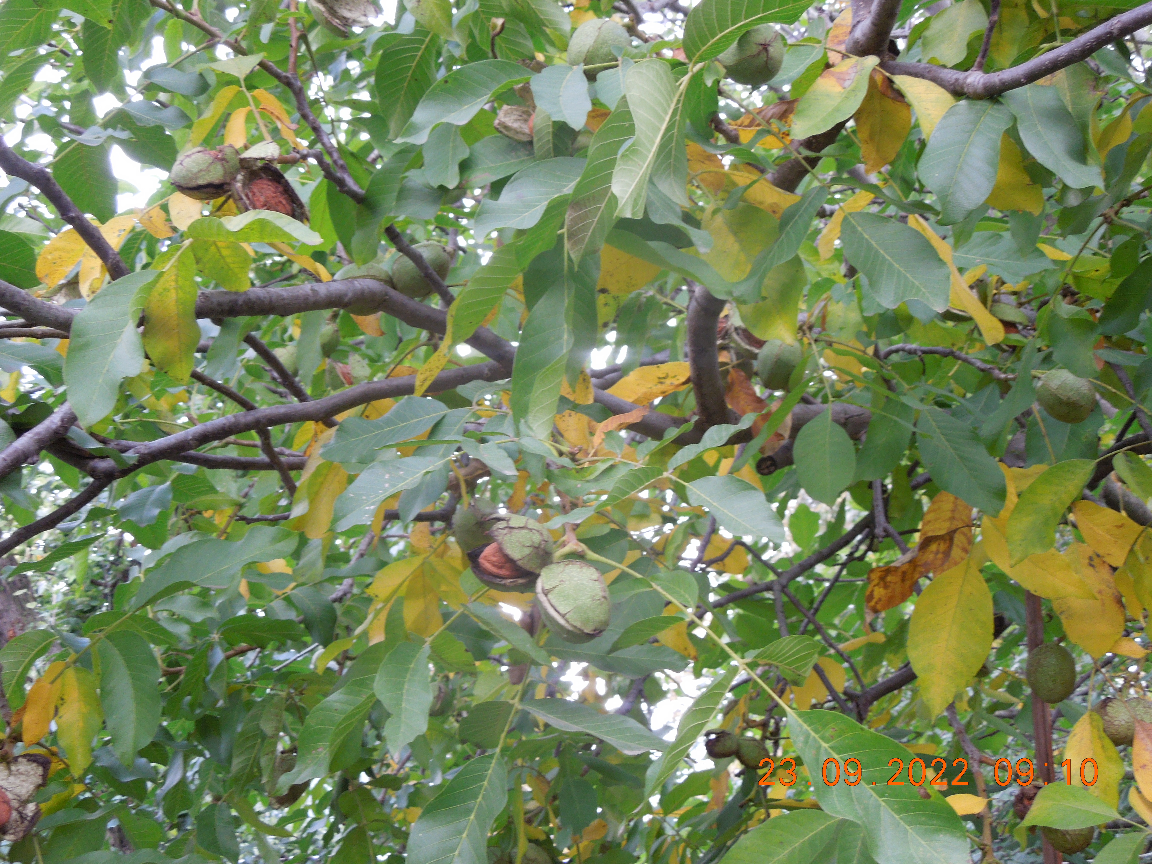 В этом году урожай значительно скромнее. В прошлом было ведер 12 ореха,нынче чуть больше 300 штук. На древе орехи еще есть, но не очень много.