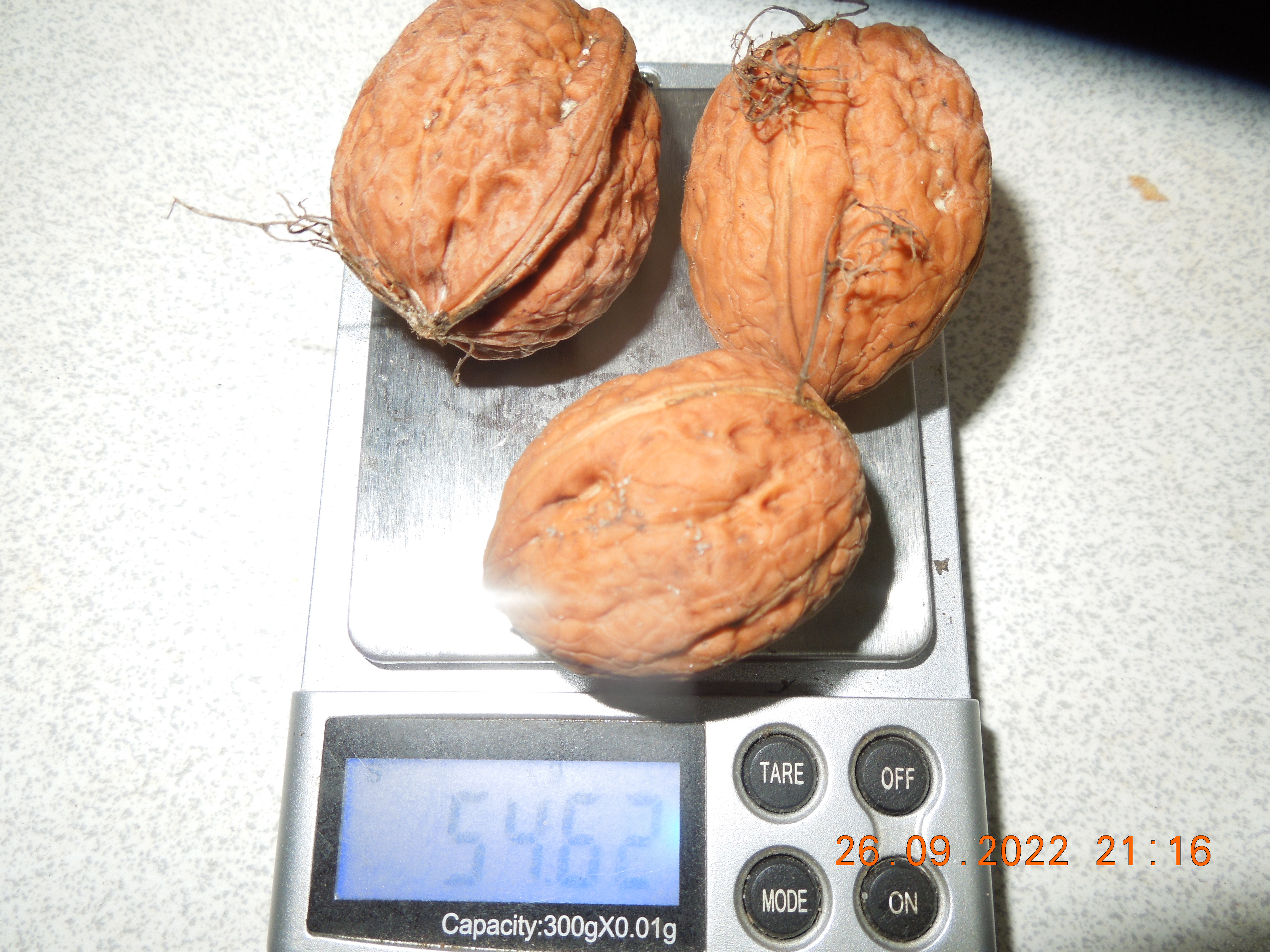 Орех тонкокорый, средний вес 10-12 грамм (данные В.Усатова).