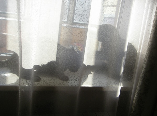 Людочка, у меня черные оба - и кот (Ваня, ему порядка 10 лет), и кошка (Лиза, ей в январе 15 должно исполниться). Оба гладкошерстные, но у Лизы шерстка малость пушистее. С годами чернота, особенно у Лизы, стала приобретать рыжеватый оттенок.