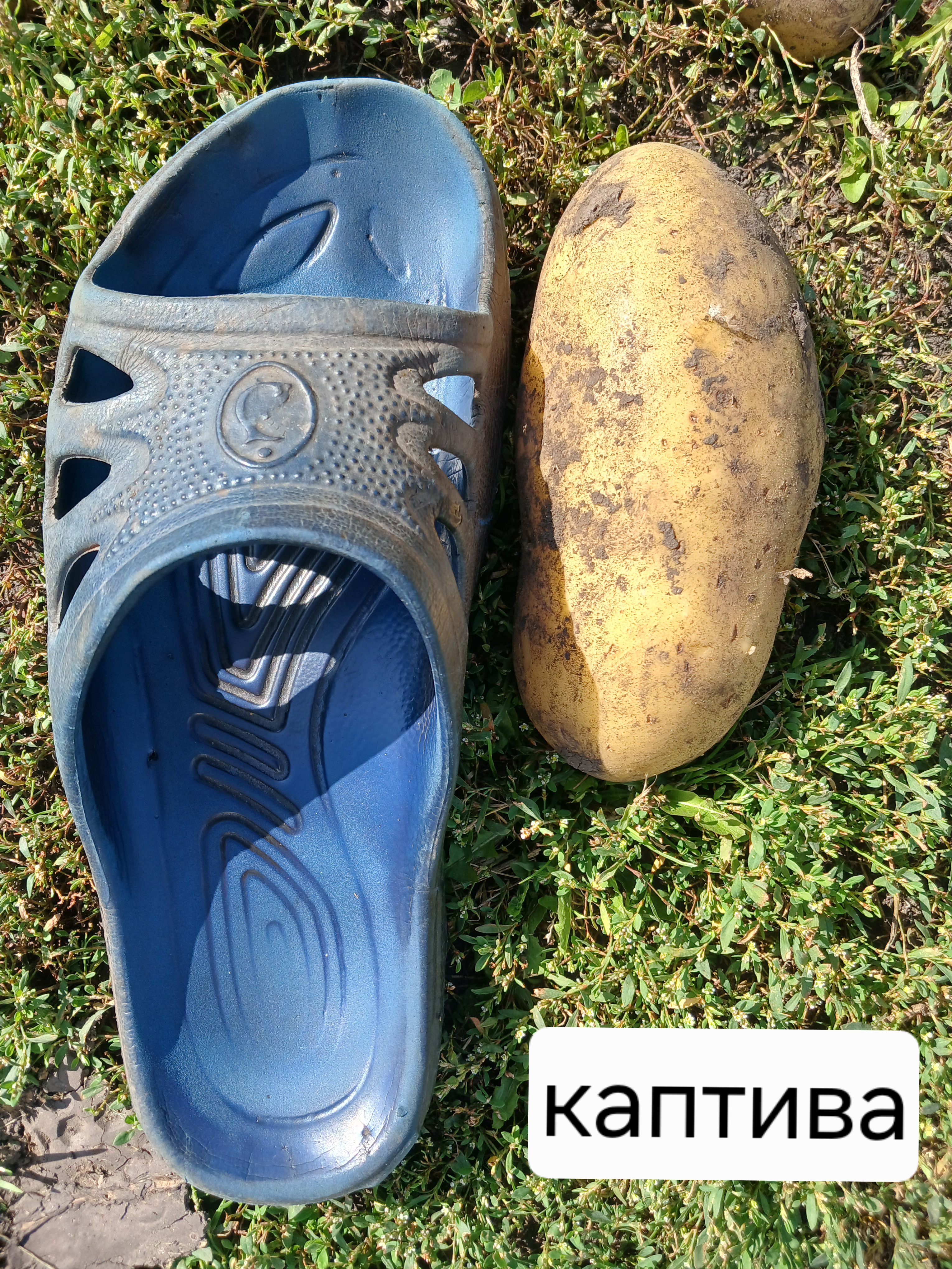 Ага, вот например сорт Славянка на сегодня, 19 штук на корню, ей ещё расти недели 3. Этот сорт вывели в советской Украине. Кстати, урожайность картофеля считалась и считается в центнерах с гектара, а не с квадратного метра.
