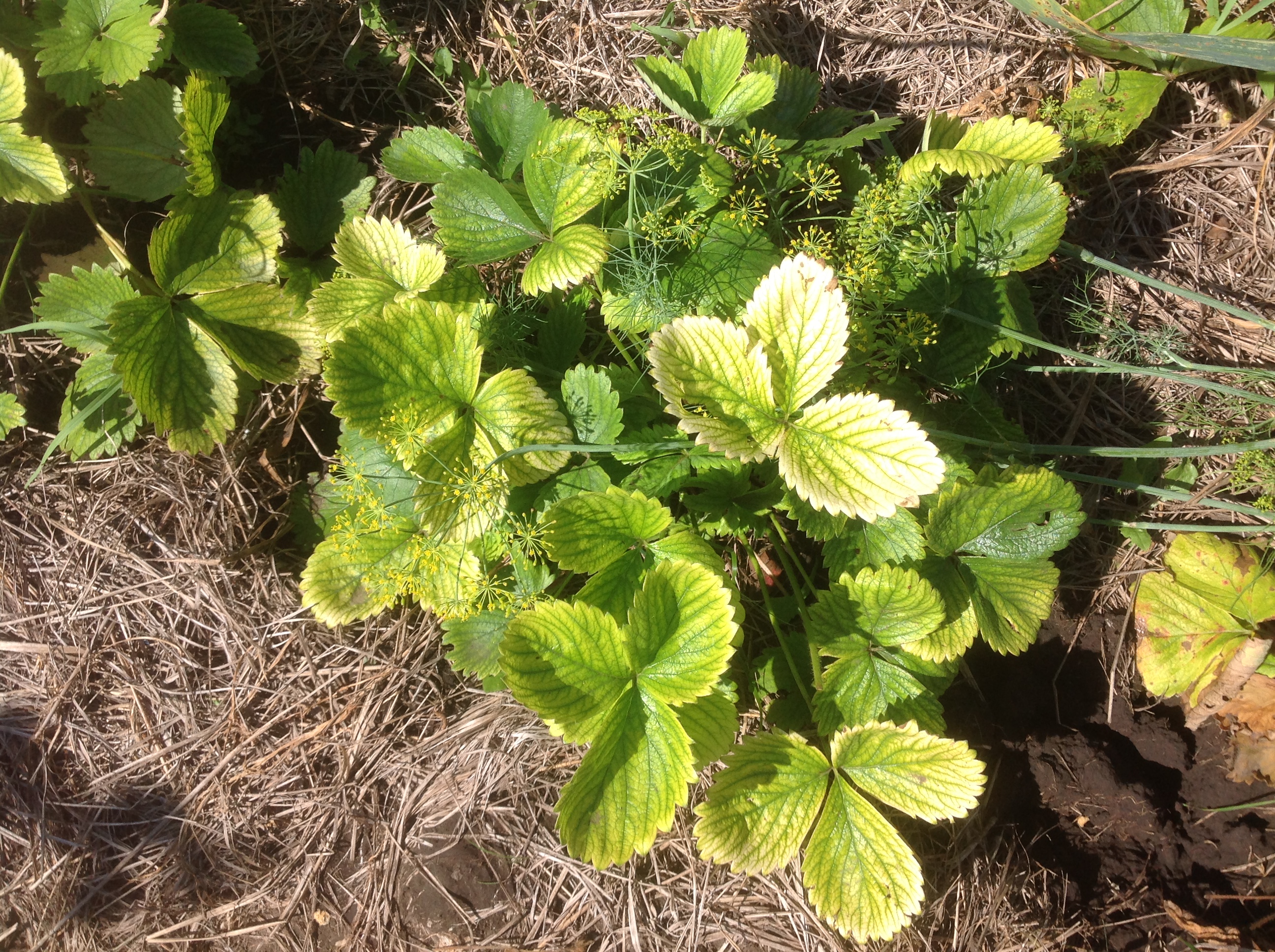 Уважаемые знатоки, подскажите, чего не хватает землянике? Межжилковый хлороз, выражен на Азии, Флорине, Альтесс. Другие сорта нормальные. Давала железо в хелате по листу, без реакции. Сульфат магния -вроде бы стало лучше, но не на всех кустах. Может дозировку сделать больше?