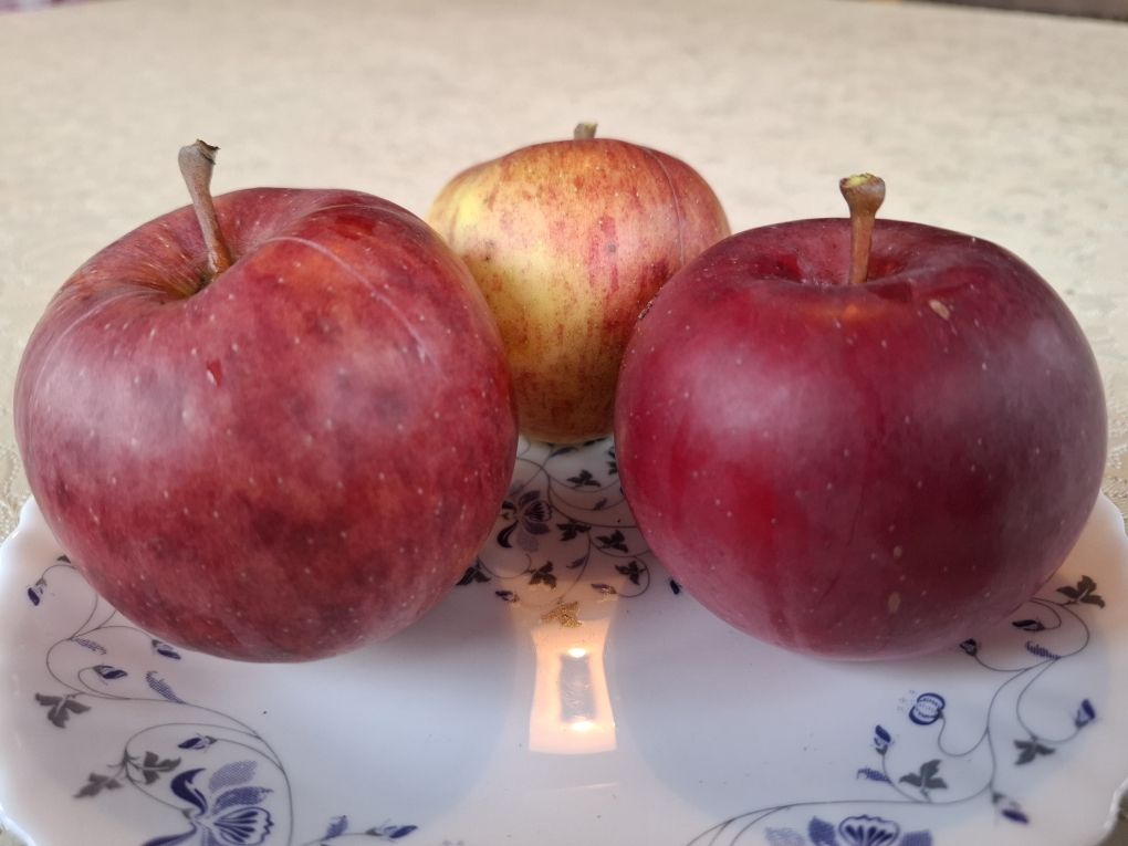 Сегодня сняли несколько остававшихся на дереве яблок ХК. Дерево посажено в углу участка и полдня находится в тени. Яблоки были замерзшие. Дома отошли и дети и внуки признали их очень вкусными, сладкими и сочными. Дозрели)