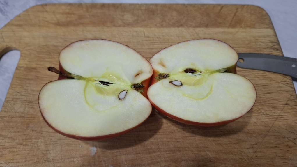 Энтерпрайз. Яблоко выглядит очень красиво. Вкус хороший, мякоть стала средней плотности. Хранились в подполе.