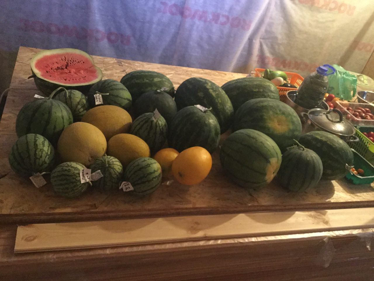 Ну и так далее. Фото много. Но все крупные арбузы с пустотами внутри, хотя на вкус отличные и не переспелые. Гибриды - Кримсон Руби, Фарао и Романза. Сейчас на грядке доспевает арбуз завязавшийся 15 июля и уже "гремит", то есть уже с полостью внутри.