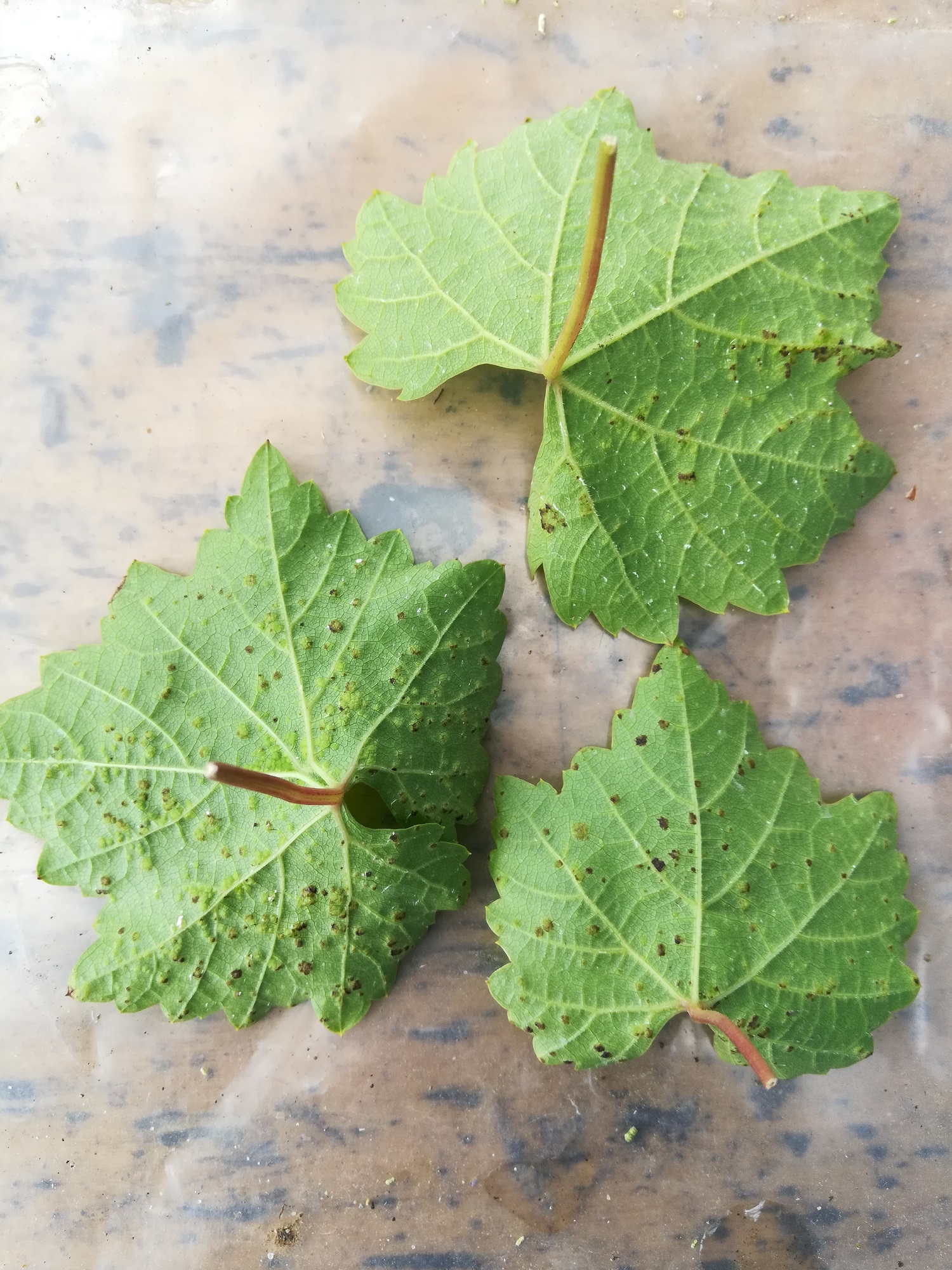 Виталий О., В начале июня купил саженцы винограда и вчера на одном, на нижних листьях, обнаружил вот такую картину. Это клещ или что то другое?
