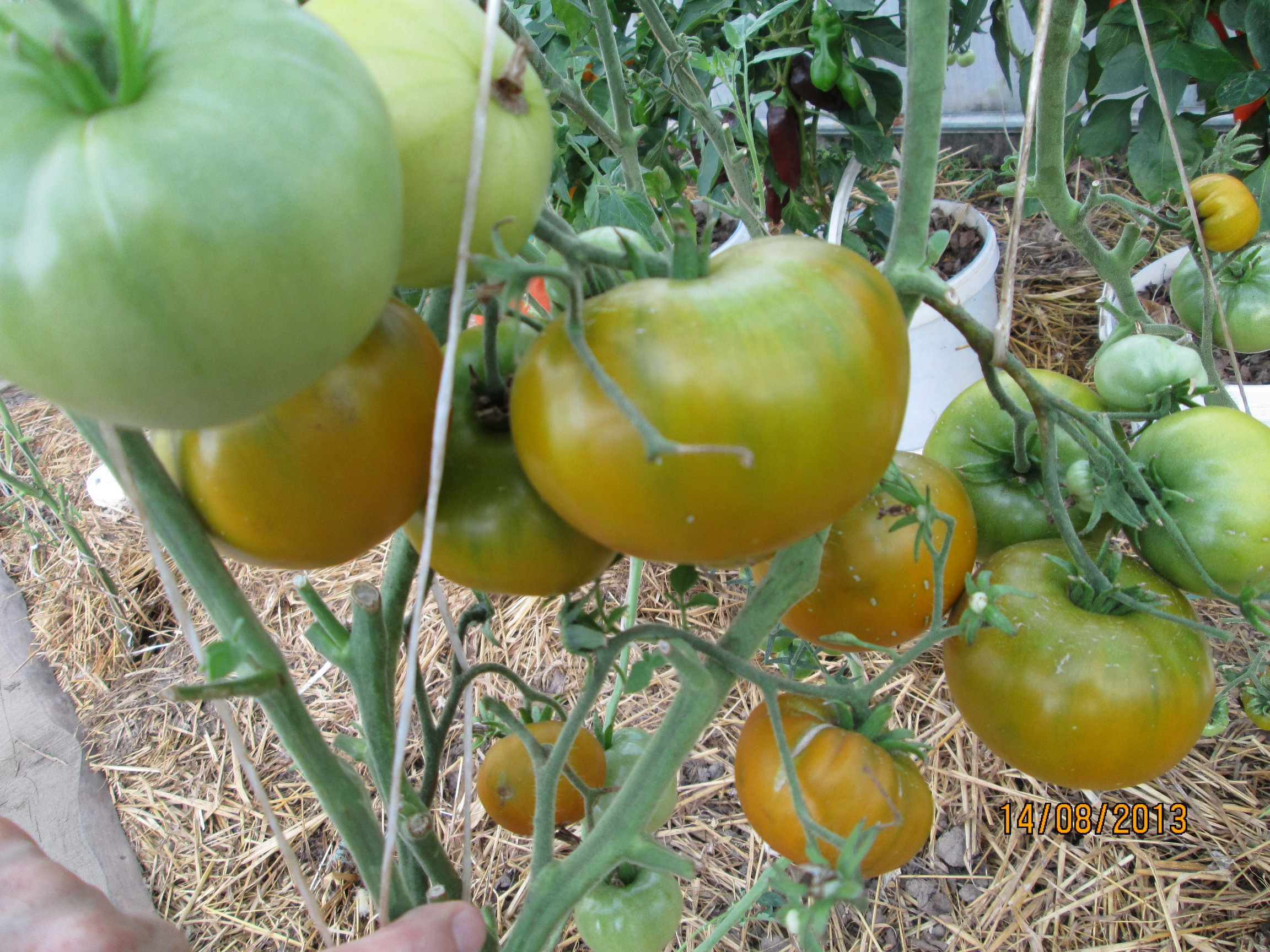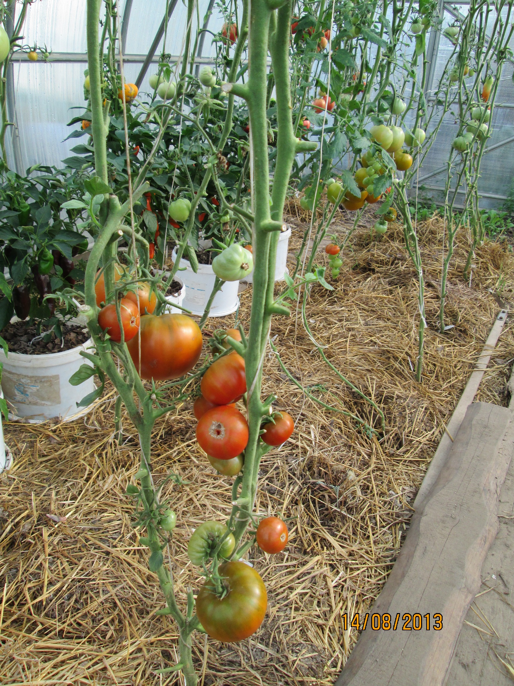 Пурпл Руссиан, на втором фото он под крышей теплицы, растет, цветет, вяжет плоды.