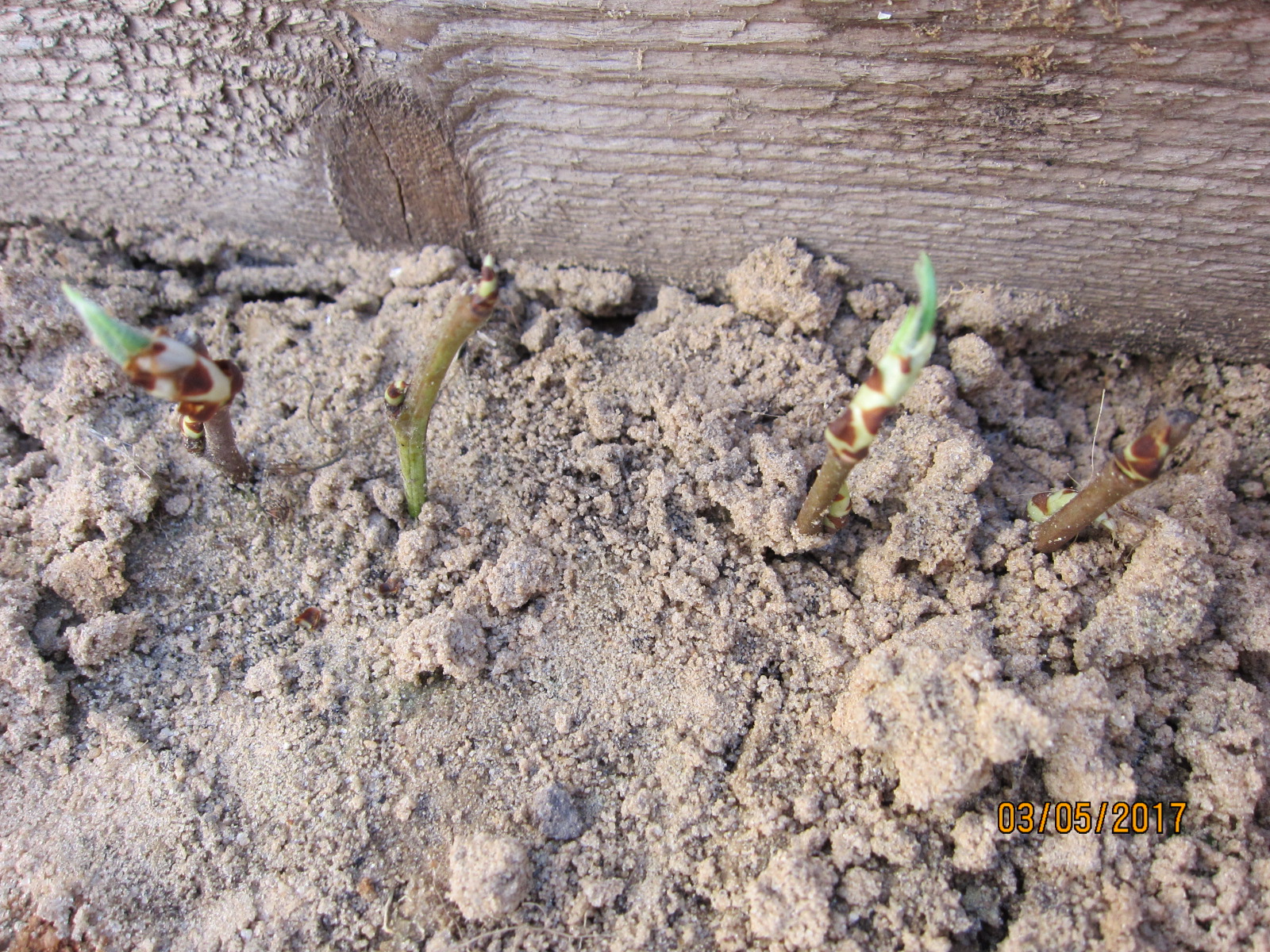 Эти подвои год доращивались.Недавно высадил их в грунт(хранились в погребе),хочу попробовать размножать их вертикальными отводками.И поросль от них,надеюсь,будет гораздо лучше укореняться в черенкователе.