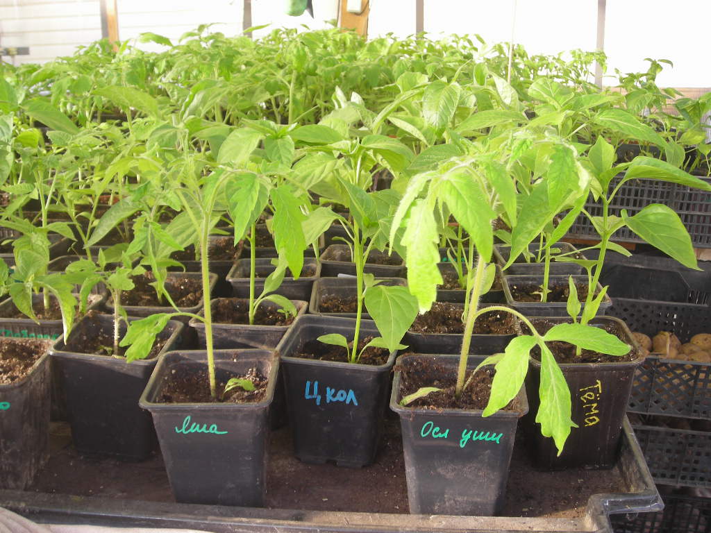 Делаю выводы никогда не садить ее в торф.горшки,и все же готовить с осени свой грунт.Сеяла в два срока 26.02 и 05.03 результаты плачевные...Та рассада которую пикировала в почву оставшуюся с прошлого года и пакеты из под сока и молока стоит прекрасная хоть сегодня высаживай,на остальную без слез не глянешь...или карлики 5 см. или тощие стебли- ниточки 8см.грунт знаменитая терррррррррррра и ваш выбор....Закралось сомнение что кроме торфа нераскисленного в них ничего нет.НИ на поливы, ни на подкормки,ни на пляски с бубном вокруг рассада не откликается...Дача в Иван. обл.выращивала помидоры в открытом грунте только деты,и несколько неизвестных сортов полученных от покупных помидоров,а в этом году семена и горшочки под рассаду забыла на даче...Семена точно мышки схрумкали и решила я попробовать все и деты и индет. 22 сорта и 8 гибридов,но как вижу моя задумка не удается с самого начала.Может все таки раскочегарится моя рассада ,к стати перцы посеянные в начале февраля стоят как каменные с 4 малюсенькими листочками...обычно в это время были зачатки бутонов...вот так начинаю дачный сезон настроение ноль...