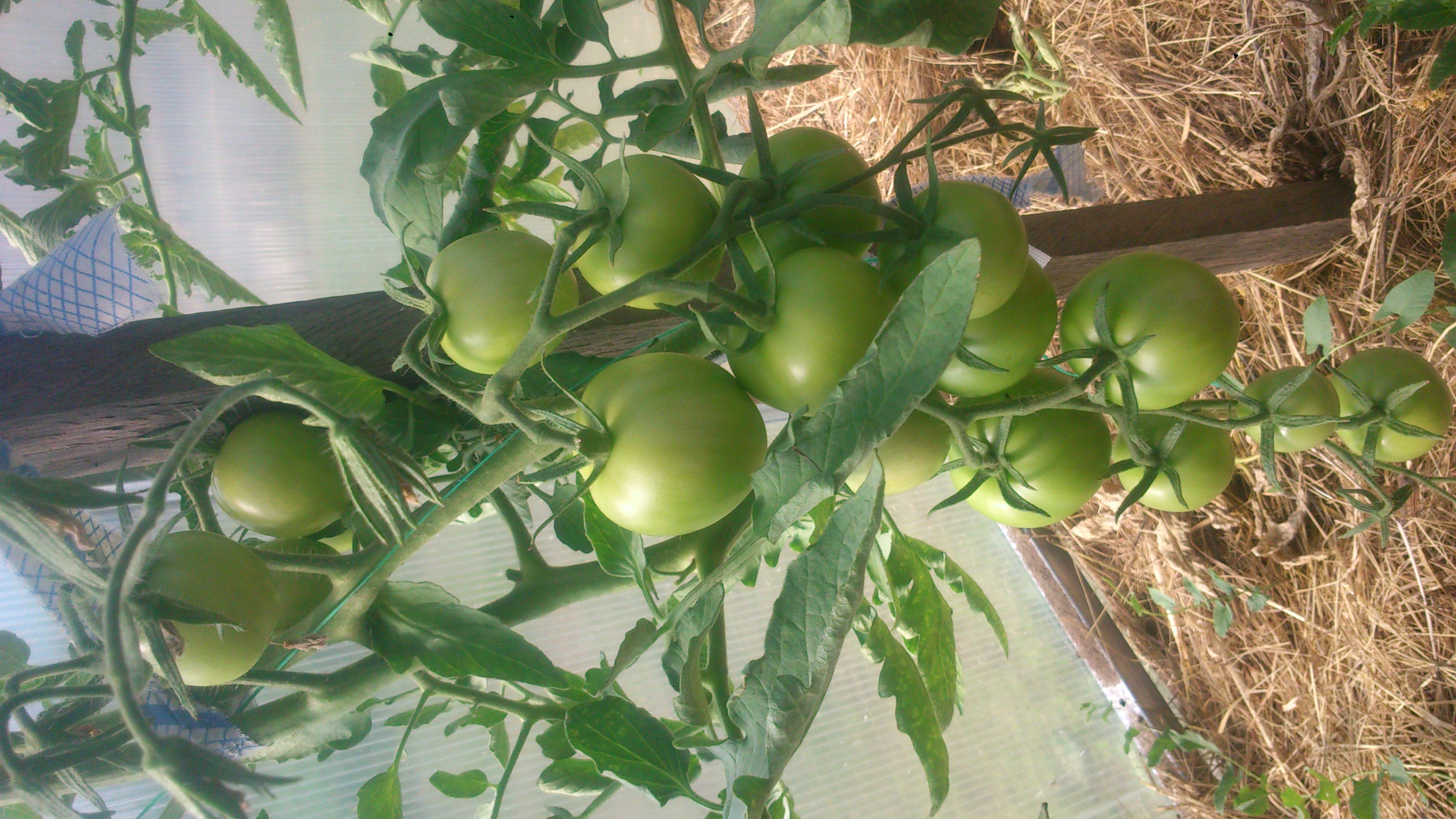 Мои любименькие томатики наливаются, стараются.....покажу маленько, хоть и зелёненькие ещё.. :oops:
