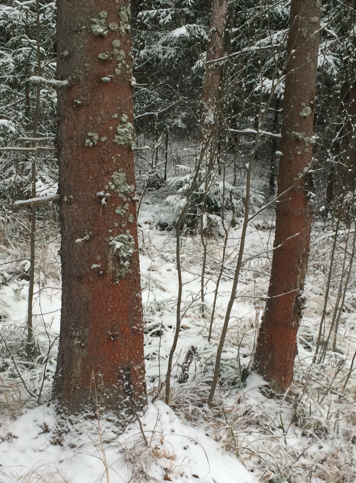 Сегодня в лесу недалеко от дома (150-200 м) увидел вот такие деревья, с рыжиной на коре в нижней части ствола. Видел только на березах и елях. Это Ржавчина или другое что-то?