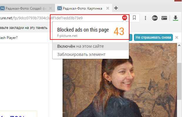 Включаю AdBloker и он отключает 43 рекламных блока