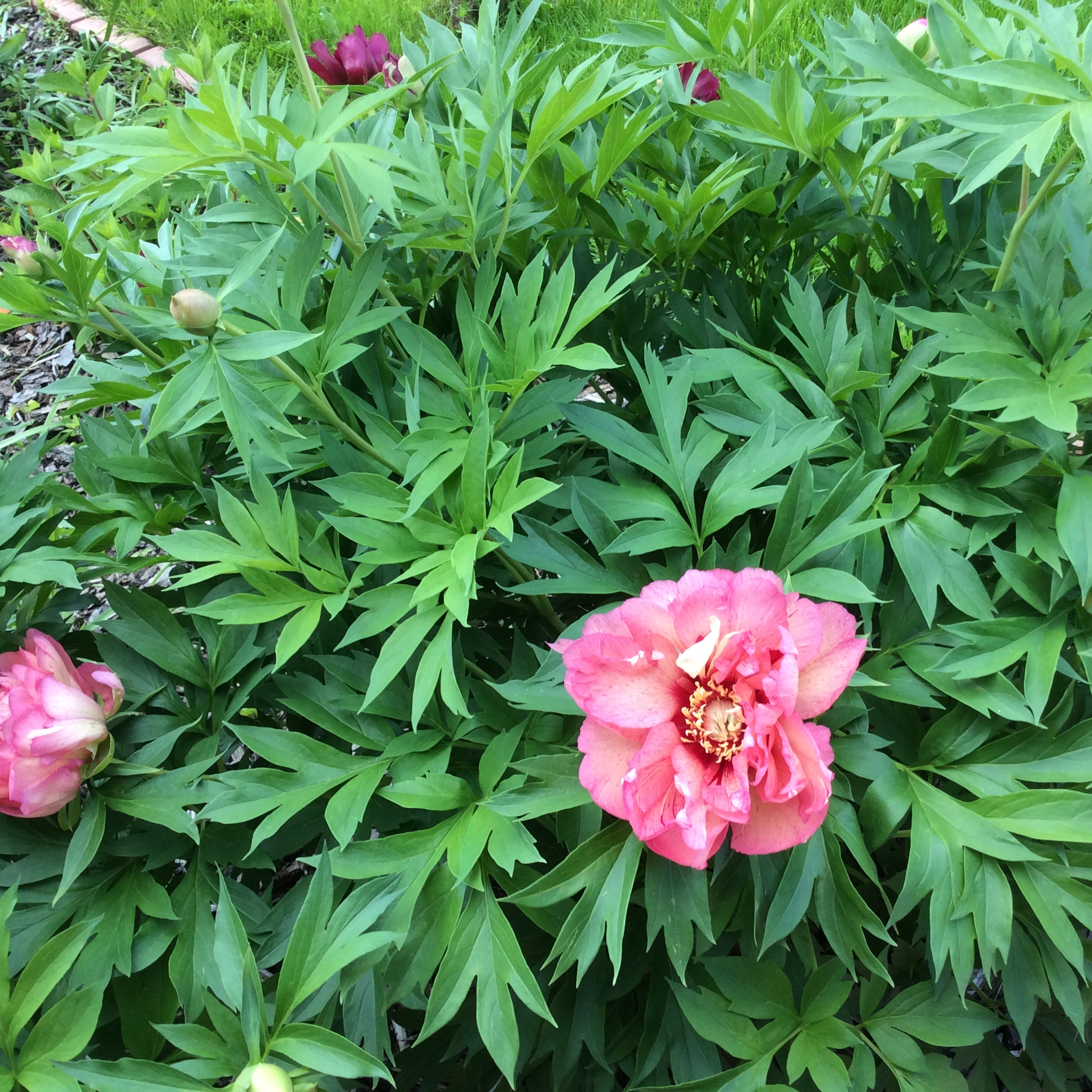 С одной стороны куста недоделанные бордовые, с другой стороны что-то более-менее похожее на неё.