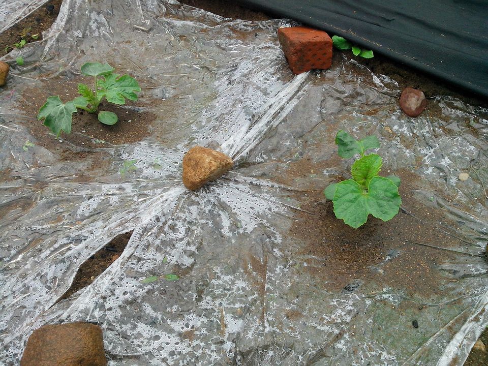 belaja gorchiza, Вот так же делаю и я,всё один в один как ты написала,просто надо делать побольше ямки и хорошо их заправлять.Сначала на лунки стелю плёнку,предварительно в лунки втыкаю колышки,которыми укрывной прижимают к земле (зелёные такие),и в этих местах потом разрезаю. И можно обойтись без тёплой грядки (для меня это очень трудоёмко,да и нет возможности её делать).Дыни и арбузы на плёнке растут хорошо,высаживаю я их на майские праздники и укрываю агроспаном 60. Благодаря плёнке мои бахчевушки прошлой весной благополучно пережили майские холода.А в этом году собираюсь сажать дыни в теплицу.