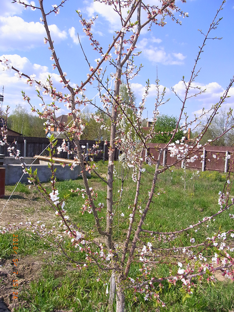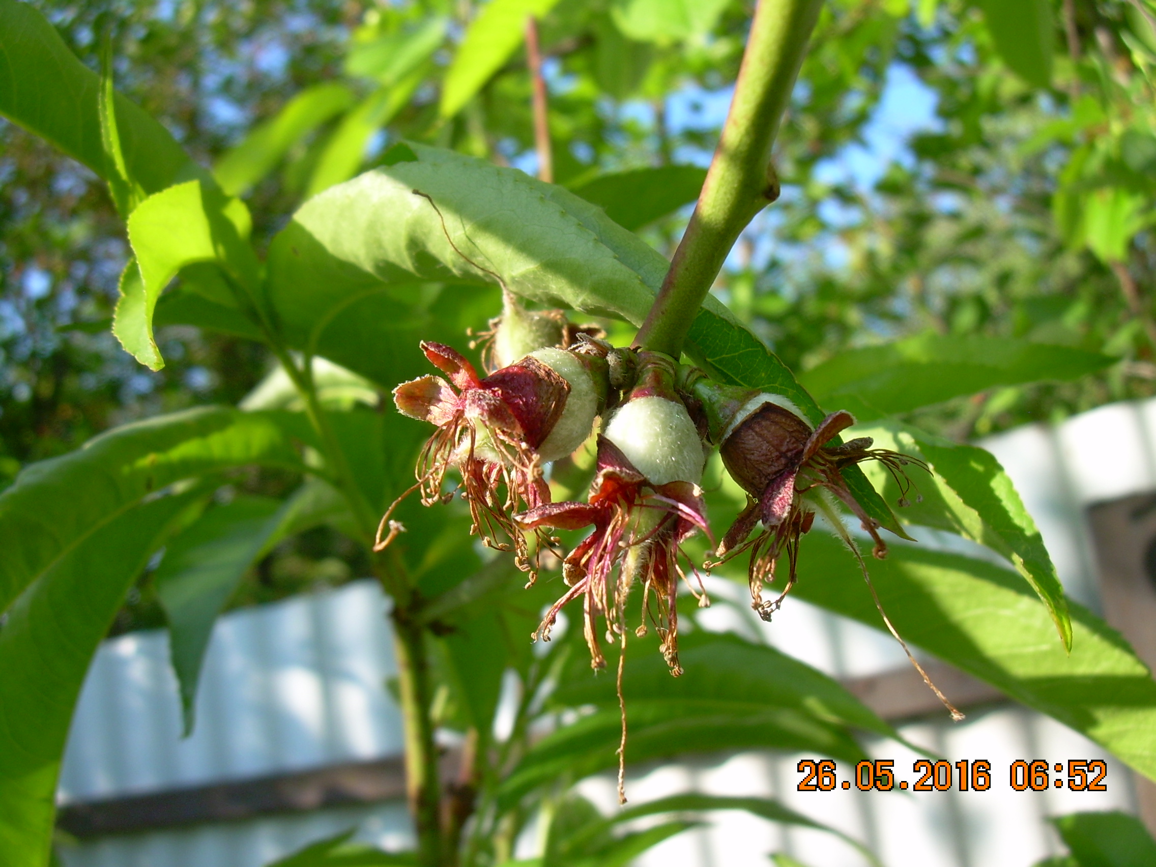 Абаканский персик почти все цветочки скинул, осталось несколько завязей. Поздно заметил, что на штамбе два почти полных кольцевых перехватов, остались узкие перешейки здоровой коры. Выпревшие участки зачистил до здоровой ткани, обмотал, лечу. На Гринсборо и другом завязь есть и пока не плохо.