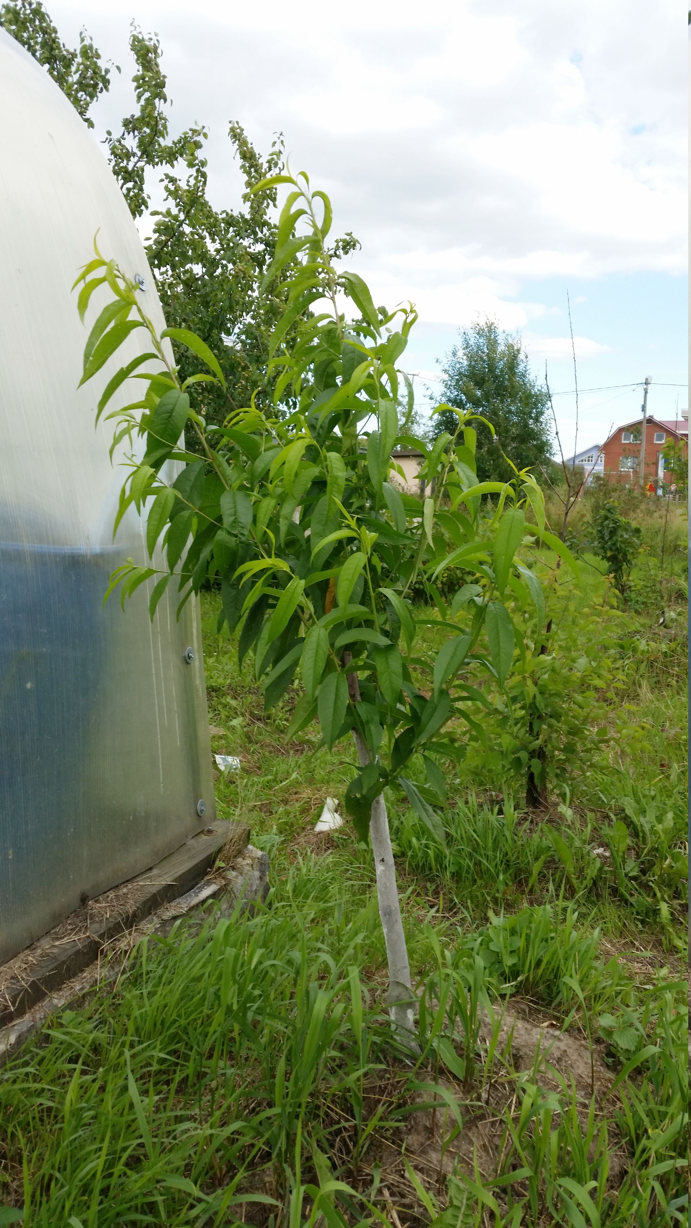 Пришли саженцы персика по почте, привиты на алычу. Высотой примерно 120 см, согнуты пополам были, в посылке 13 дней. Высадили под углом.