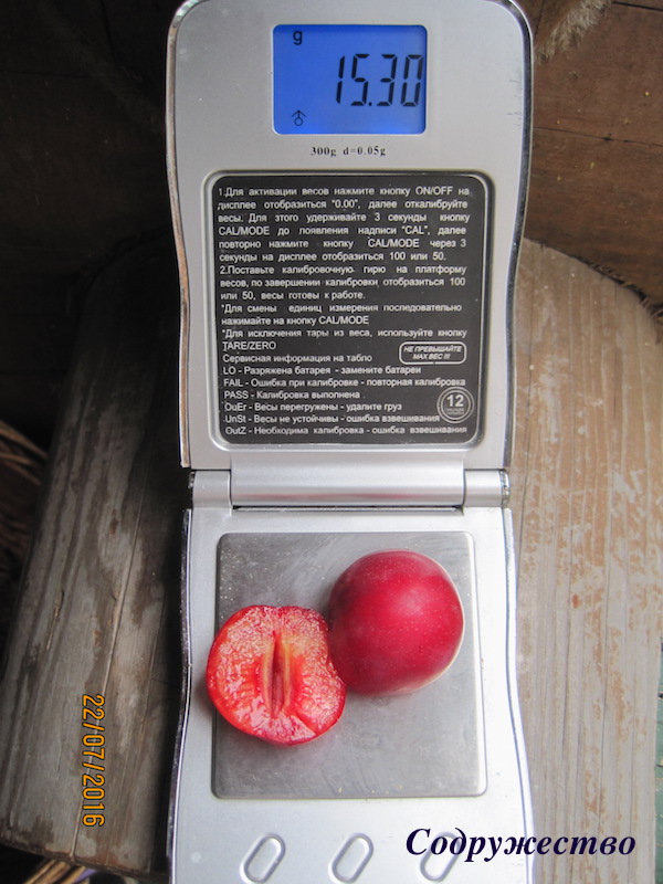 Крупномер, размер вполне устраивает, тем более он при одинаковом весе больше того же Подарка Спб, ну и на порядок вкуснее. У нас не до выбора ращмера и цаета, все что способно плодоносить и вкуснеп терносливы уже хорошо, а эта имеет очень достойный вкус. Ну а размер дело десятое