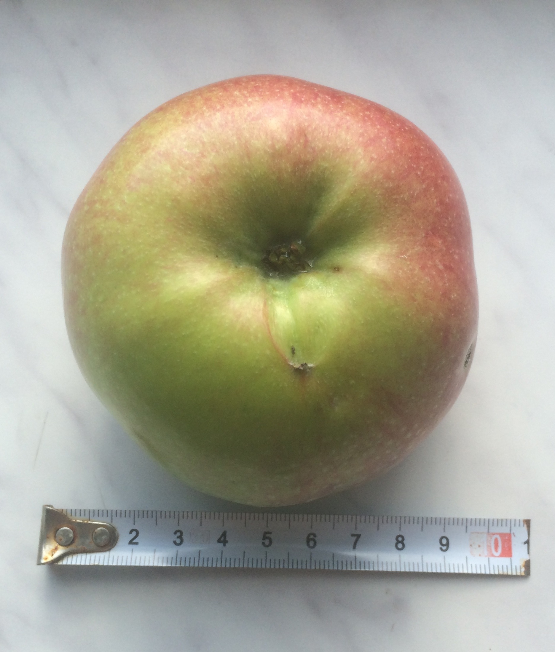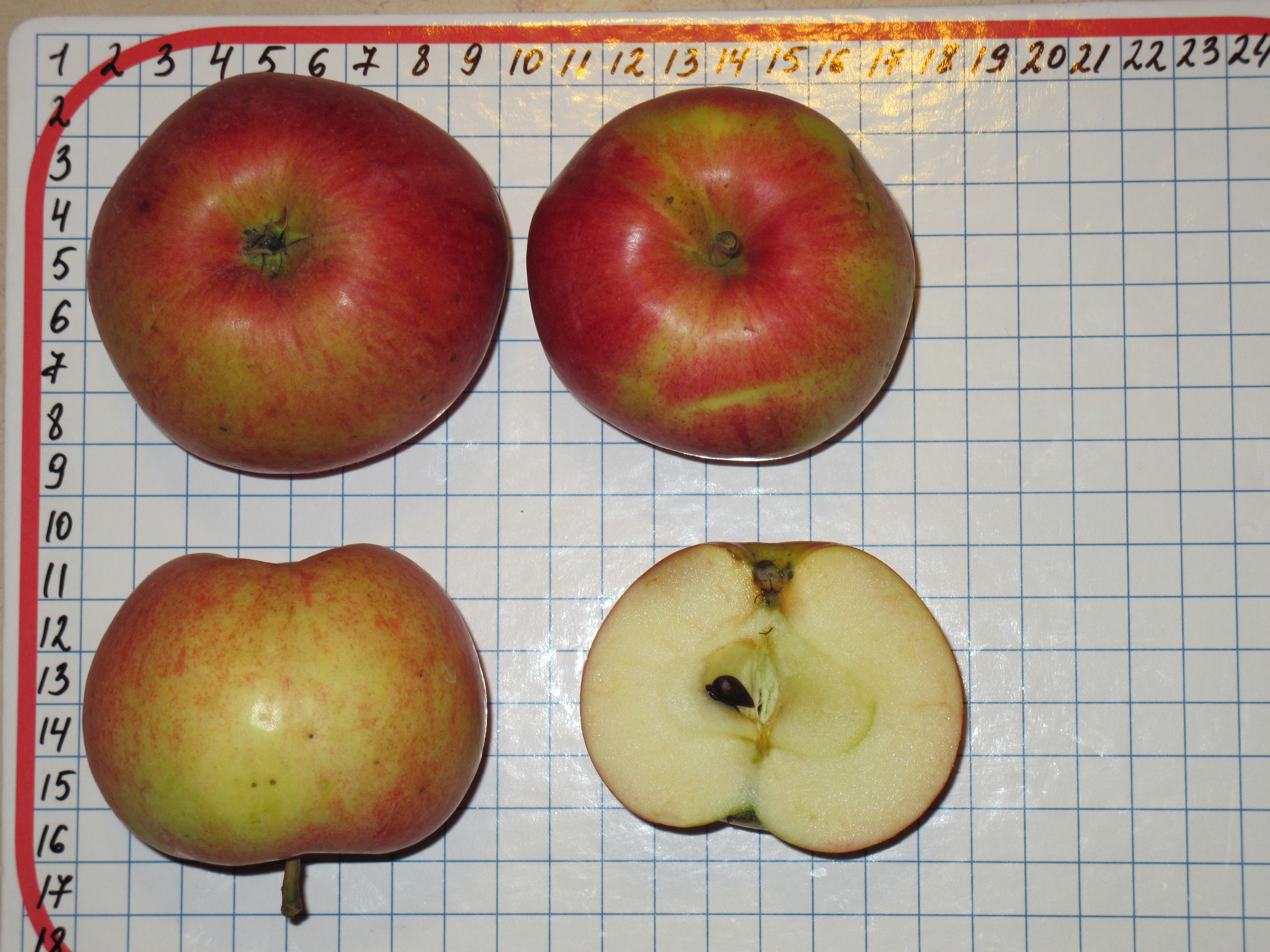 Есть определенные доводы в пользу Орловима (воронка, размер и форма плодов, сроки плодоношения). Но смущает сплошной румянец, у Орловима полоски присутствует, даже у яркоокрашеных плодов. Кроме того у Орловима подкожные точки практически не заметны. В этой связи возможно это орловские сорт Желанное. По одному яблоку определить сорт практически невозможно. Подсказку может дать сортемент питомника, где саженец был куплен.