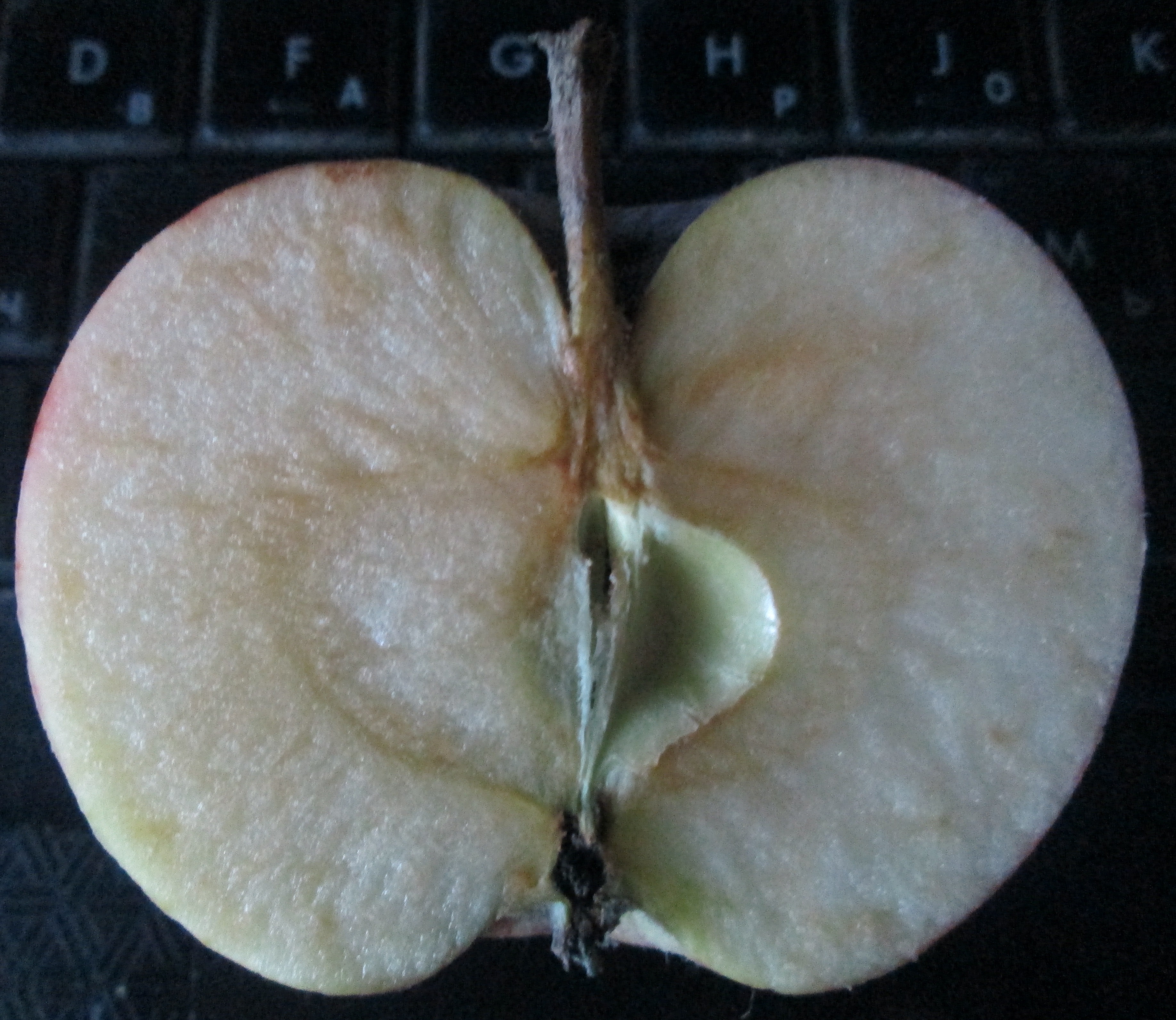 Помогите, пжт, определить сорт. Продавалось как Богатырь, но вижу не он. Осений сорт, семечки еще белые, есть уже можно. Сочное, вкус пустоватый, послевкусие сладкое. Дерево густое, ветви отходят под острым углом.
