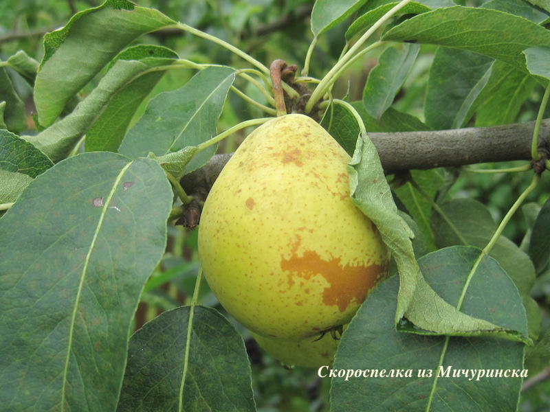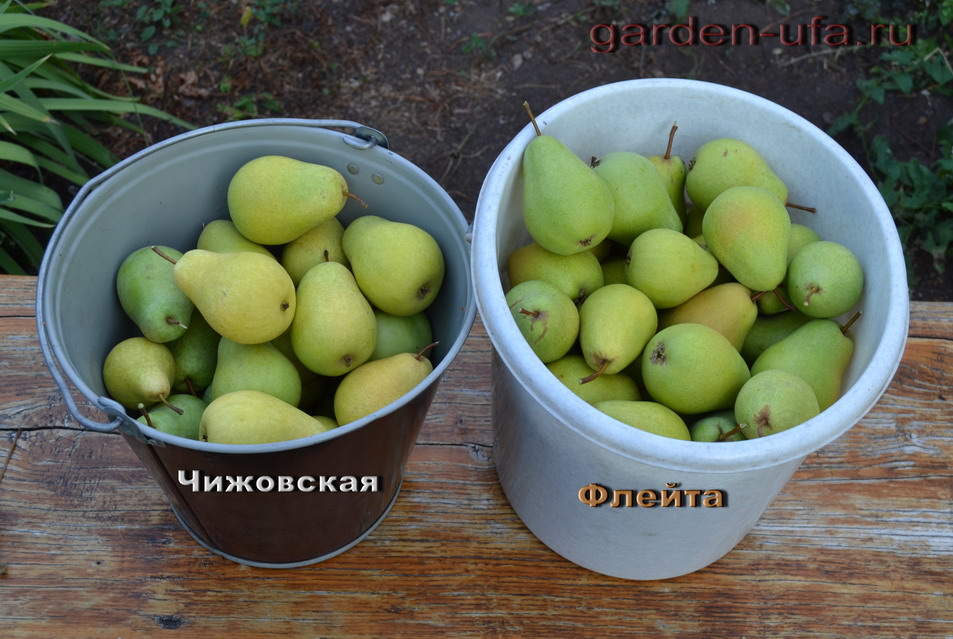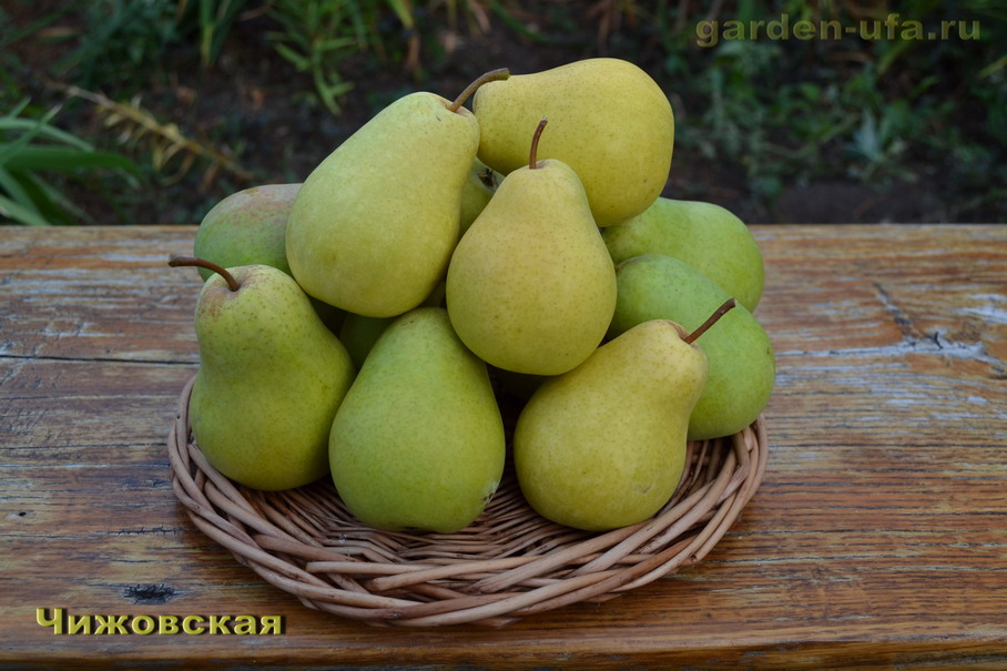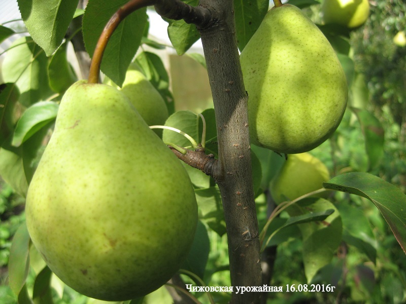 Чижовская урожайная – сорт-фантом, якобы отобран В.И. Сусовым и распространяется из его сада. У меня черенок тоже из сада В.И. Сусова. Молодое дерево с мощным ростом, практически не поражается бурым плодовым клещом (рядом растет груша сорта Маршал Жуков – все листья в клеще). Первые плоды на третий год после прививки черенком на сеянец дикой груши. Плоды до сих пор очень плотные, даже пожелтевший плод оказался не достаточно съедобным, т.е. сорт созревает чуть позже Чижовской. В текущем году дерево заложило огромное количество плодовых почек.