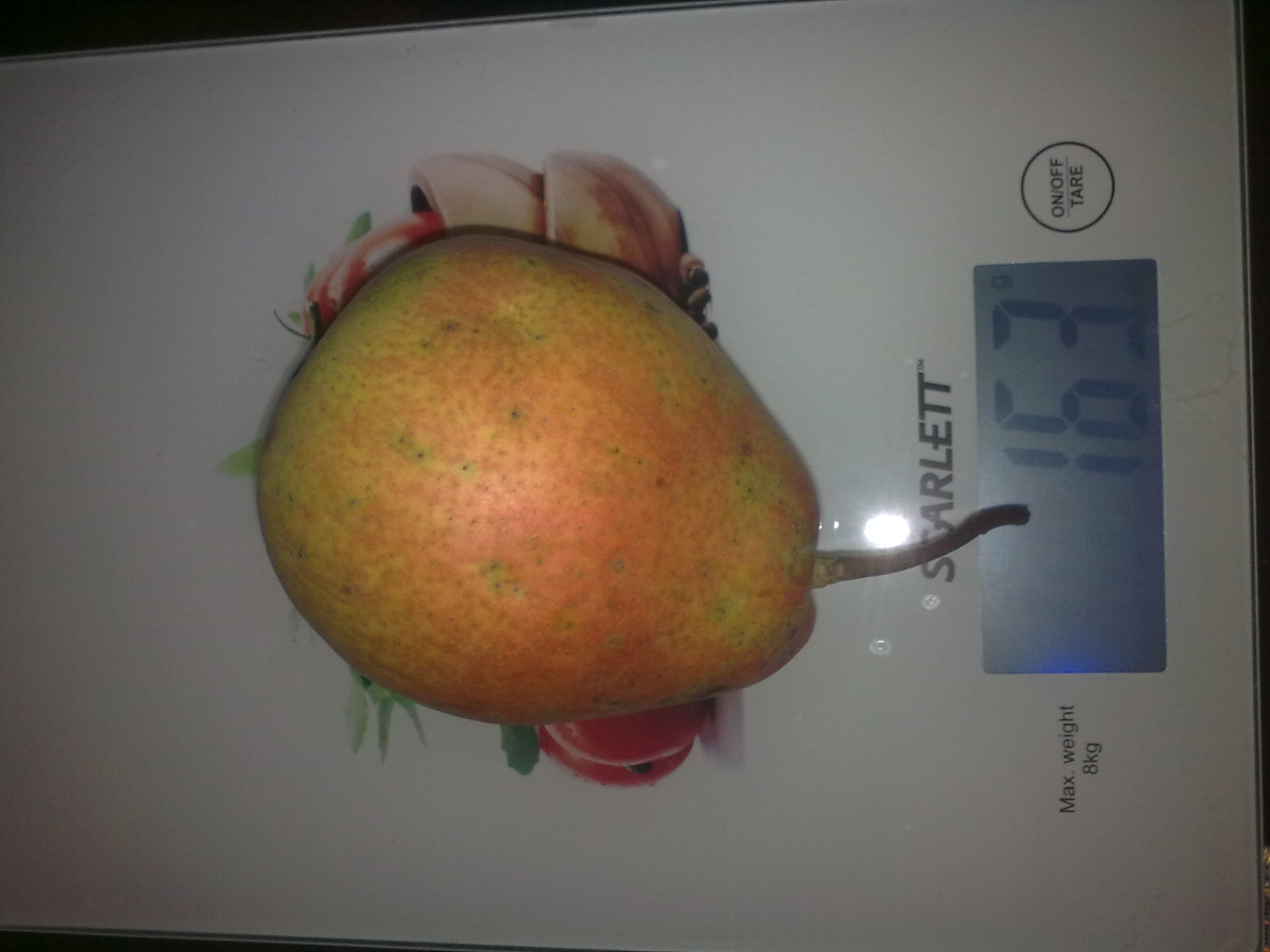 Георгий, видно, что-то нехватает или пересорт. Есть фото Марины, на котором виден размер. Правда окраска на её грушах интенсивная. По данным оригинатора вес груш 100 г.