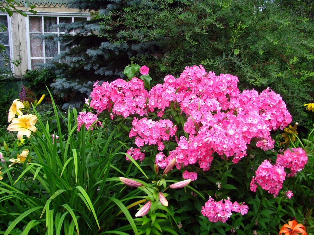 гейхеры, лилии, флоксы, хосты, сад.