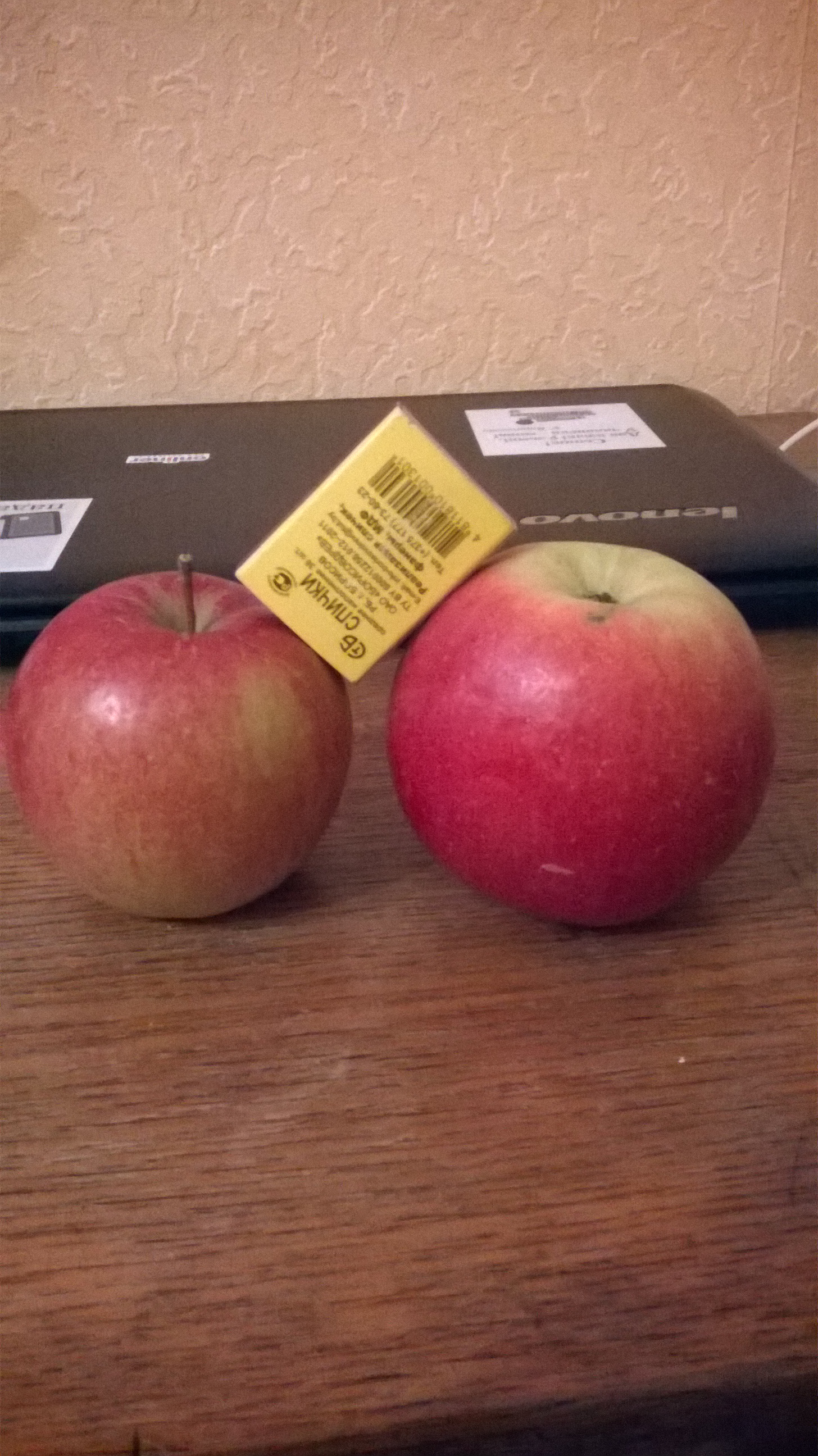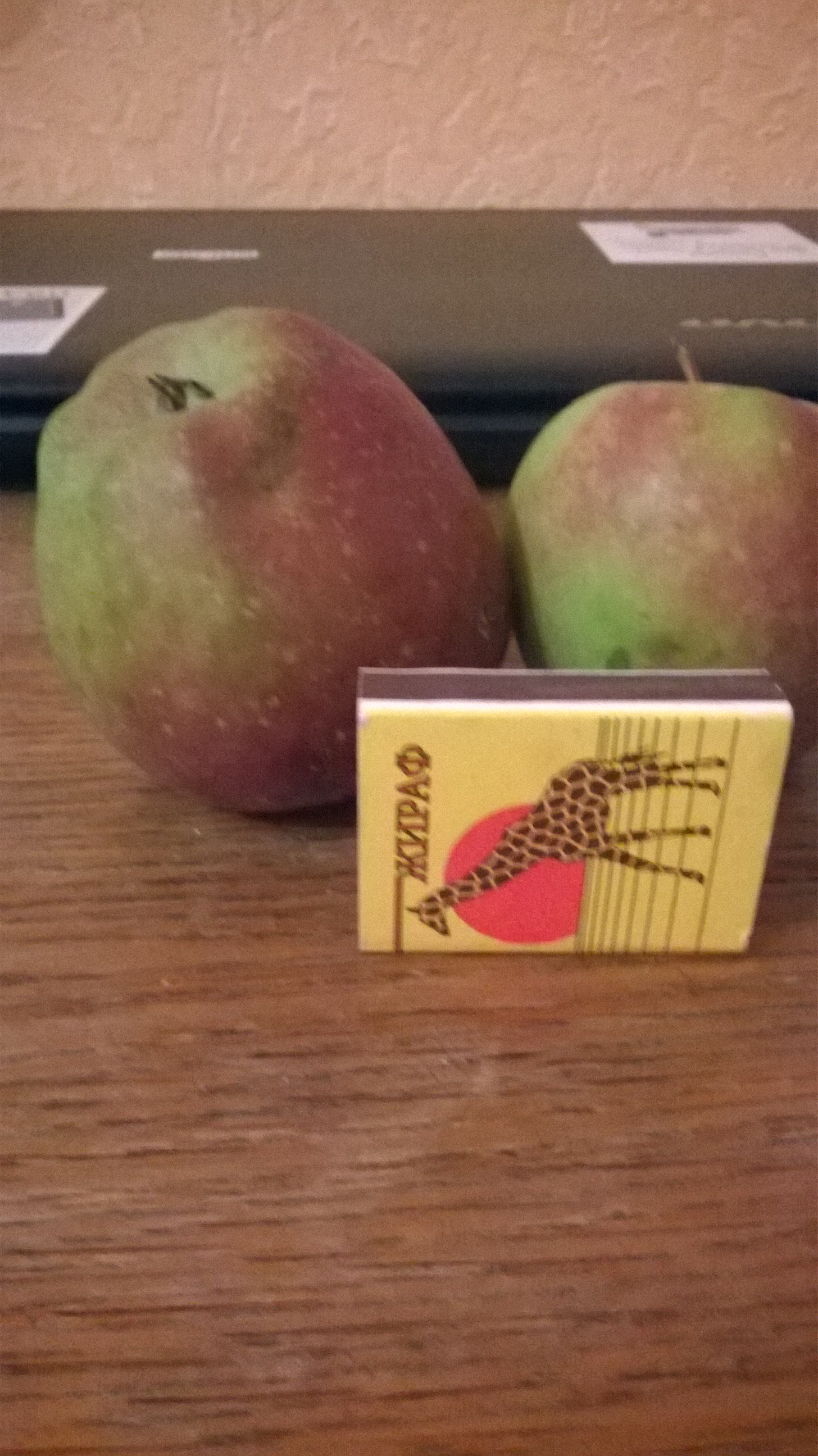 Размер яблок около 200 г. Плоды не опадают, сняты с дерева в конце сентября.