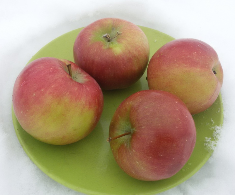 Сегодня доел последнее яблоко Надзейны. За в общем то невзрачным видом( по крайне мере у меня в саду) к 1 ноября яблоки приобрели очень хороший, насыщенный вкус. Он вроде одновременно с заметной кислинкой и довольно сладкий. Мякоть сочная. Яблоки наверное, преспокойно хранились бы до Нового года.