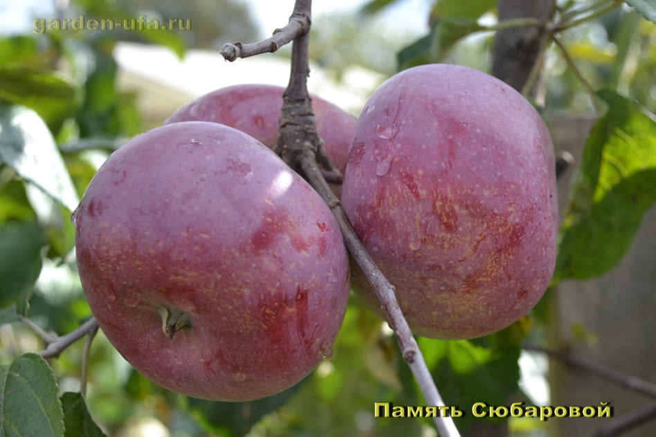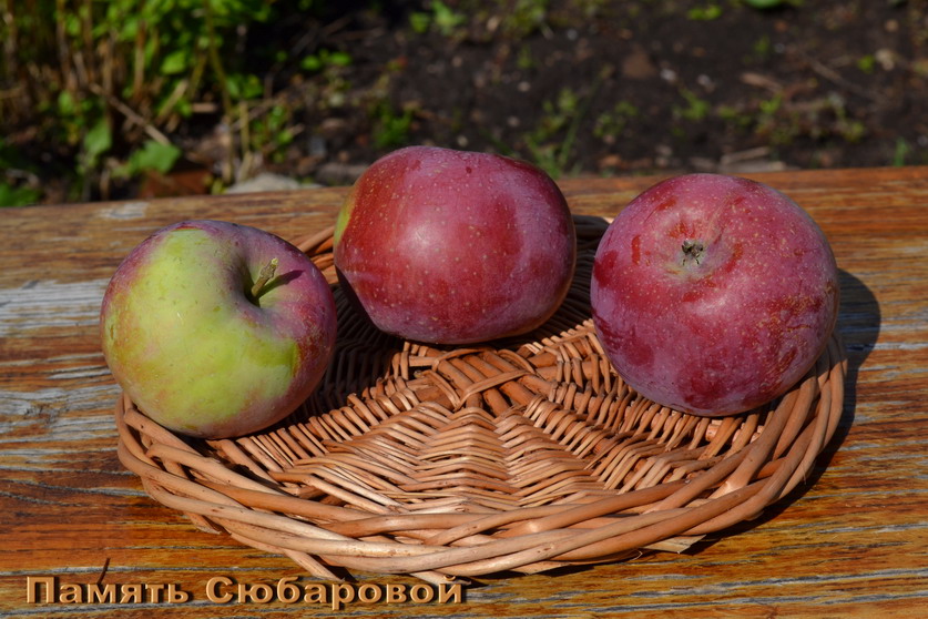Памяти Сюбаровой поздний сорт, ещё не готов. На фото оригинальный клон, который долго лежит. Есть ещё осенний вариант, но более ярко окрашенный. Эти яблоки (первый вариант) по вкусу не уступают Иманту.