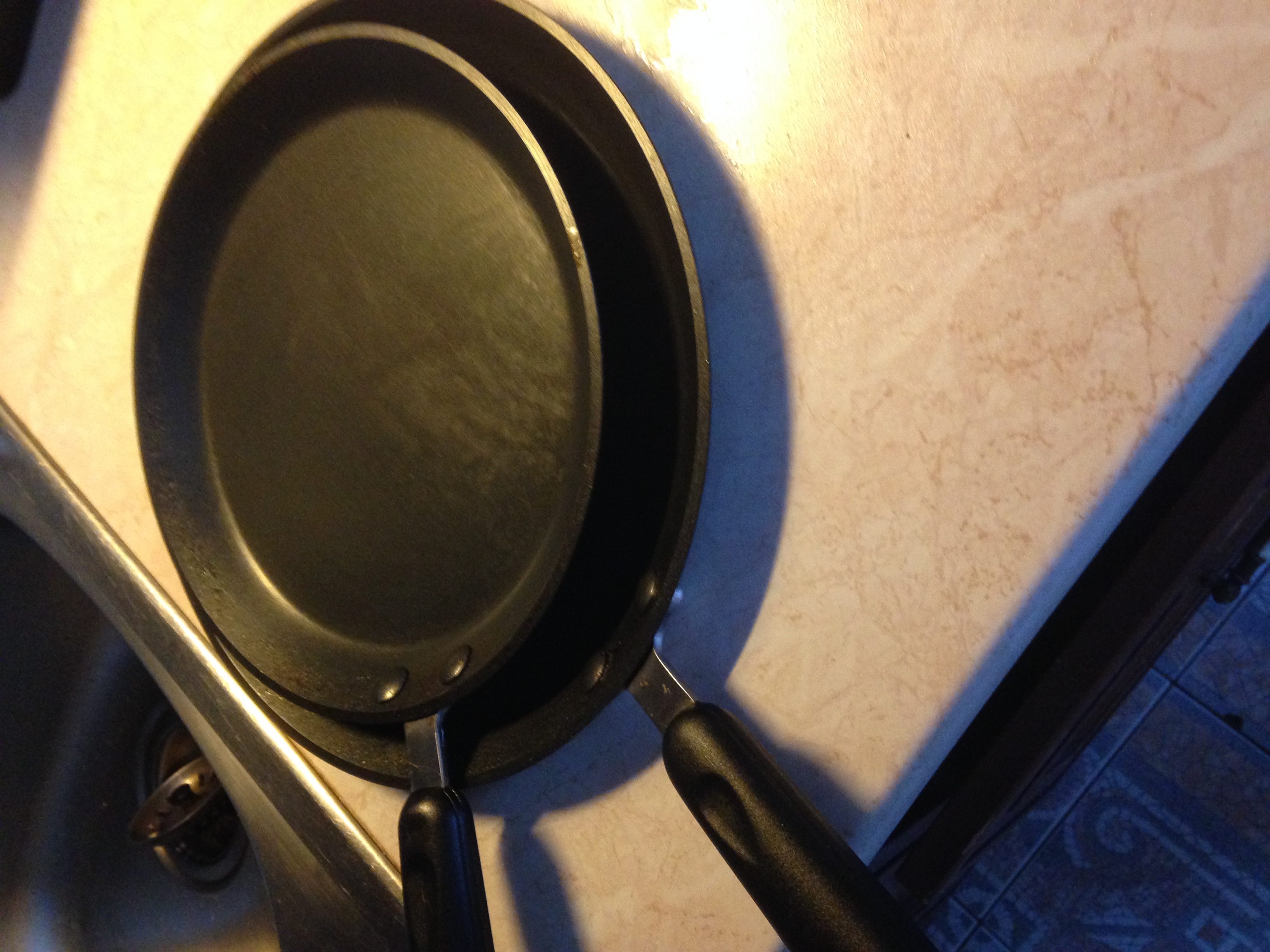 То что мы называем чугунными сковородками, которые были до перестройки, то они алюминевые. А которые прямо чугунные чугунные, они не подъёмные :-) . У меня всякие есть, но всегда хочется чего-то новенького. Вот из нержавейки у меня как-то не получилось подружиться, там как-то сначала надо хорошо нагревать, потом масло, тогда ни чего не пригорает.