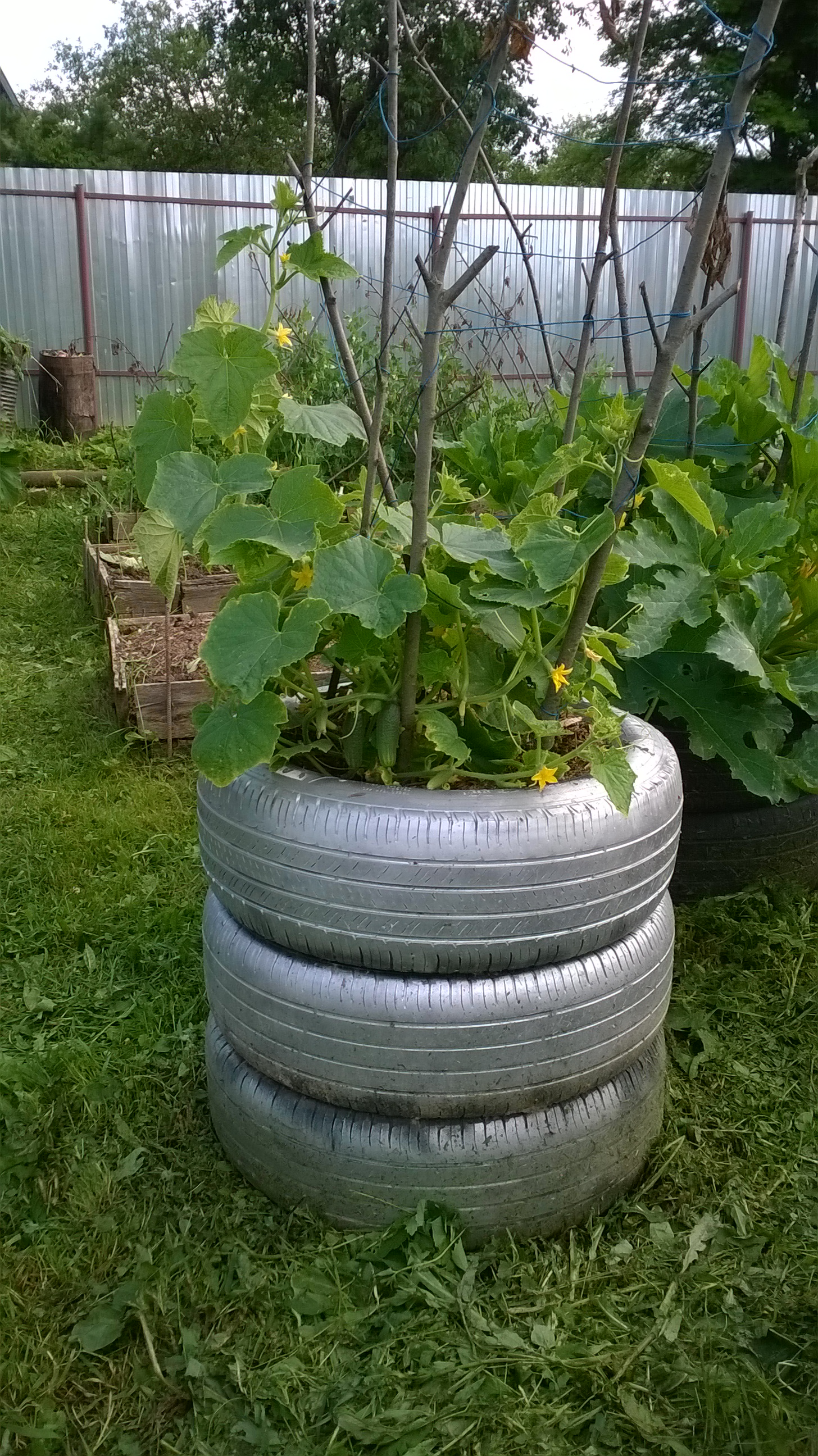 Ставите друг на друга, постепенно засыпаете грунтом. Снаружи покрасить либо серебрянкой, либо белой краской (от перегрева земли). Не первый год использую. Сажаю всё подряд: кабачки, огурцы, томаты, физалис.