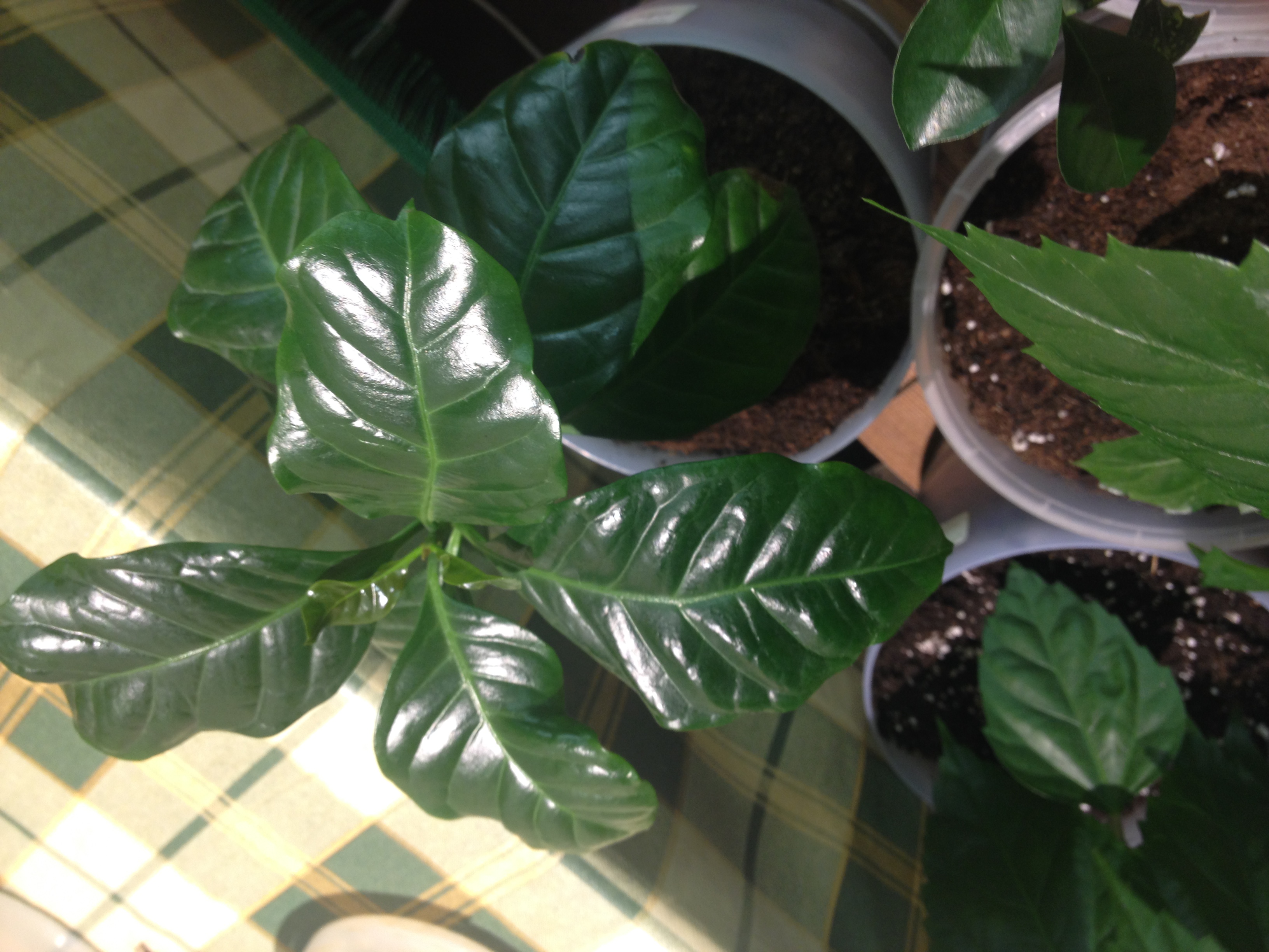 Вот достала с лоджии второй укорененный кофе (всю зиму с кактусами мерзнет), его в мае 2016г перевалила в горшок побольше из стакана для йогурта.
