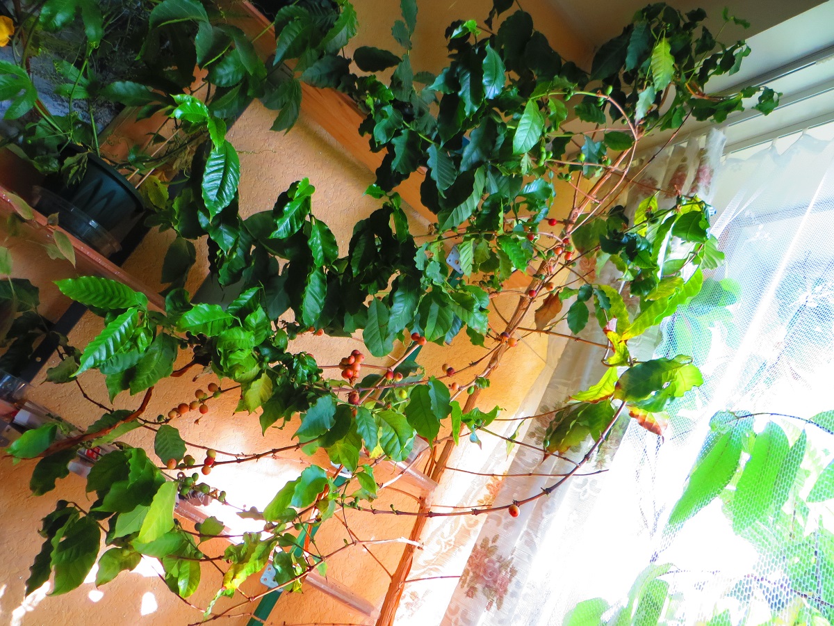 кусты кофе высотой с метр, но их стригут. У меня сейчас сантиметров 30 -40 пока.