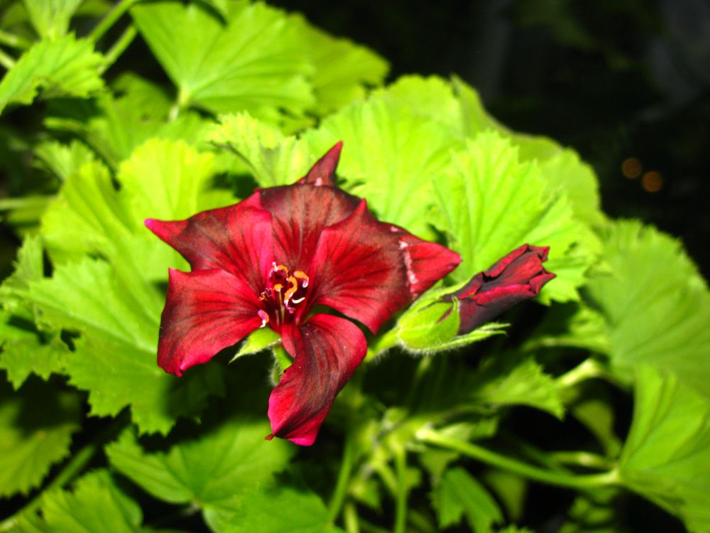 Мою неизвестную пеларгонию опознали как Pelargonium odoratissimum или Яблочная пеларгония. Пахнет яблоком и/ или ананасом, зацвела, цветочки по полсантиметра)) Вроде семена завязывает, если кому надо... Посмотрим