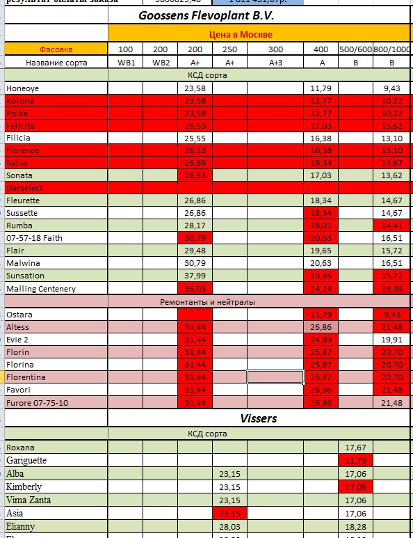 Точно, у Елены в табличке на 98 стр. темы клетка с Gariguette стала красной. Значит этого сорта больше нет у производителя. Но в то же время в Елениной табличке присутствует Мальвина во всех классах, хотя было объявлено, что остался только класс В. Так что всё нужно уточнять.