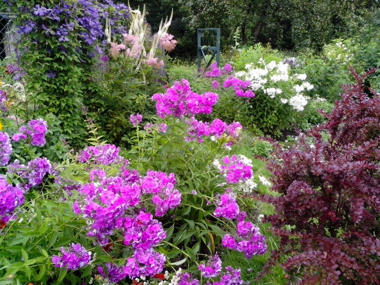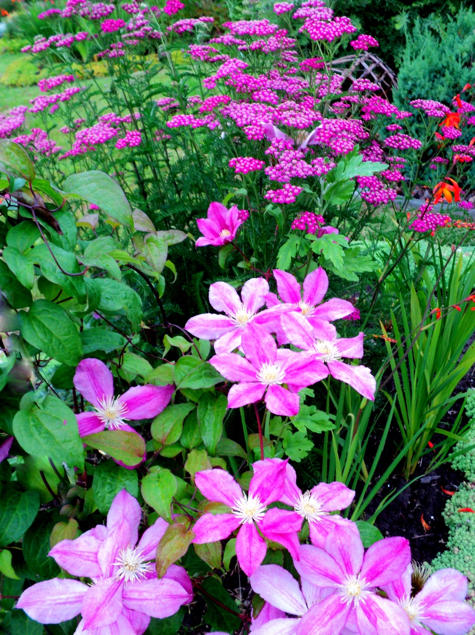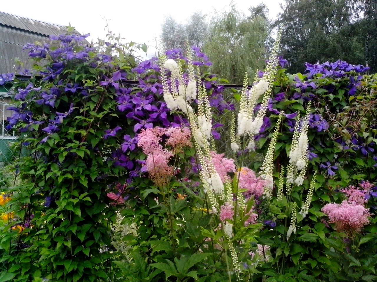 Кстати, для полнейшей картины - правее, с фиолетовым клемом (Элегия) есть и розовый цвет (филипендула) и белый (цимицифуга)