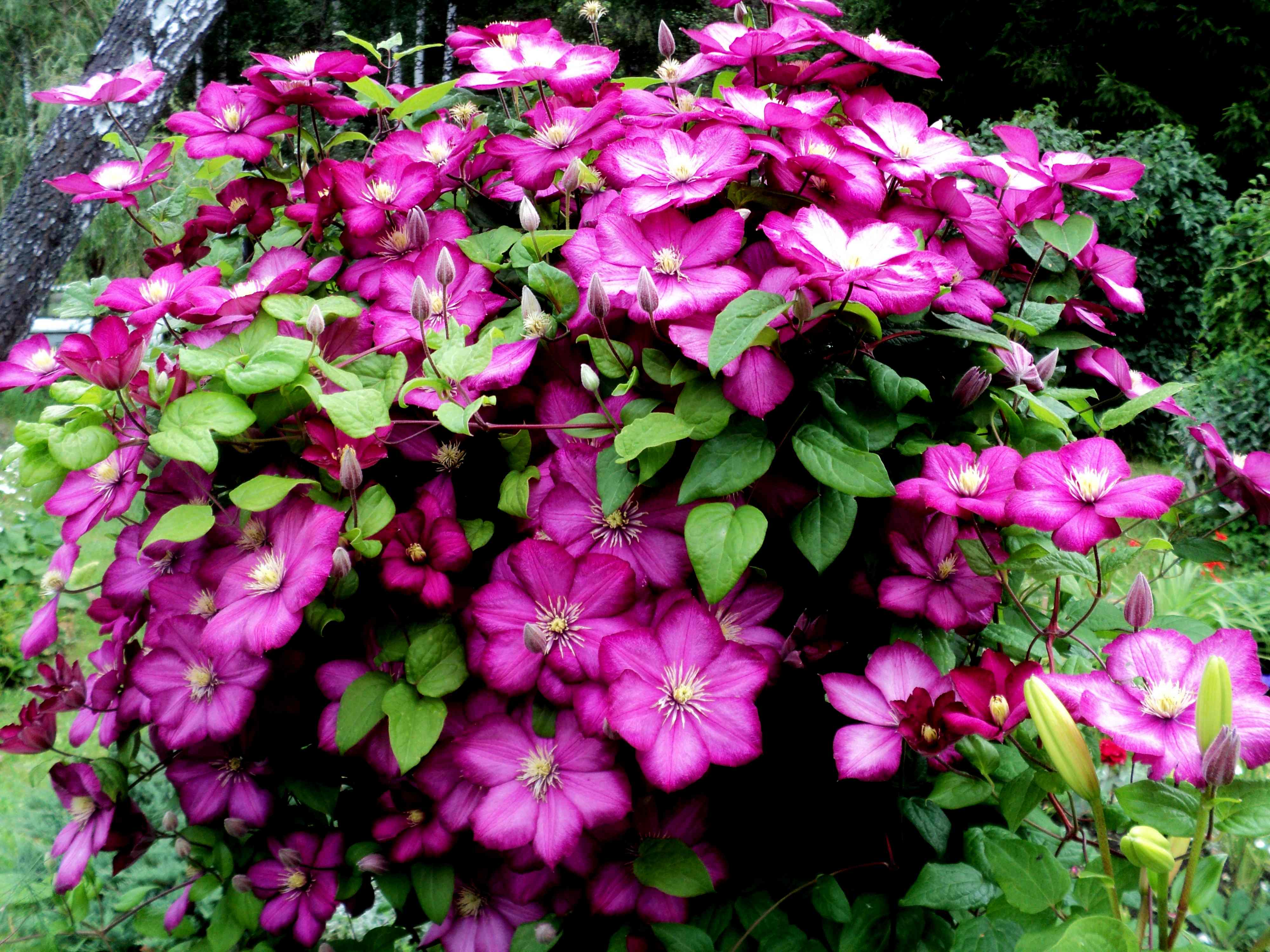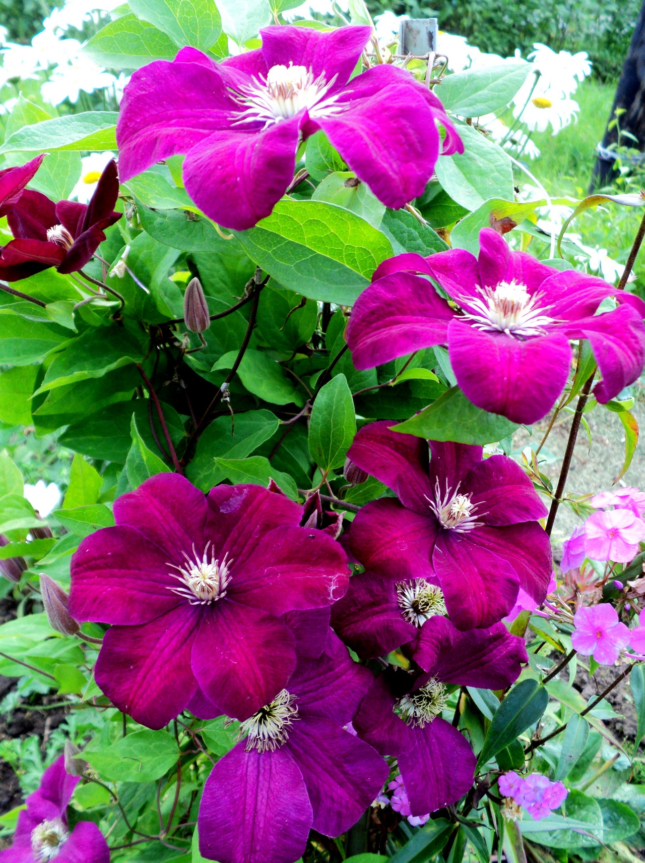 ДочьЖени, если это клематис розового цвета, то весьма вероятно, что это - Ville de Lyon. У меня он тоже с рынка, куплен давным-давно. Думаю, что раньше он был самым распространенным из розовых. И цветки у него некрупные.