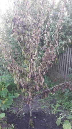 Я за всё лето уже несколко раз обрабатывал аньтибиотиками,потаму что в том году одна груша болела ожогов но она подругому у неё сохли концы,а у этой сначало потихоньку желтели листья а потом резко сразу все стали коричневые