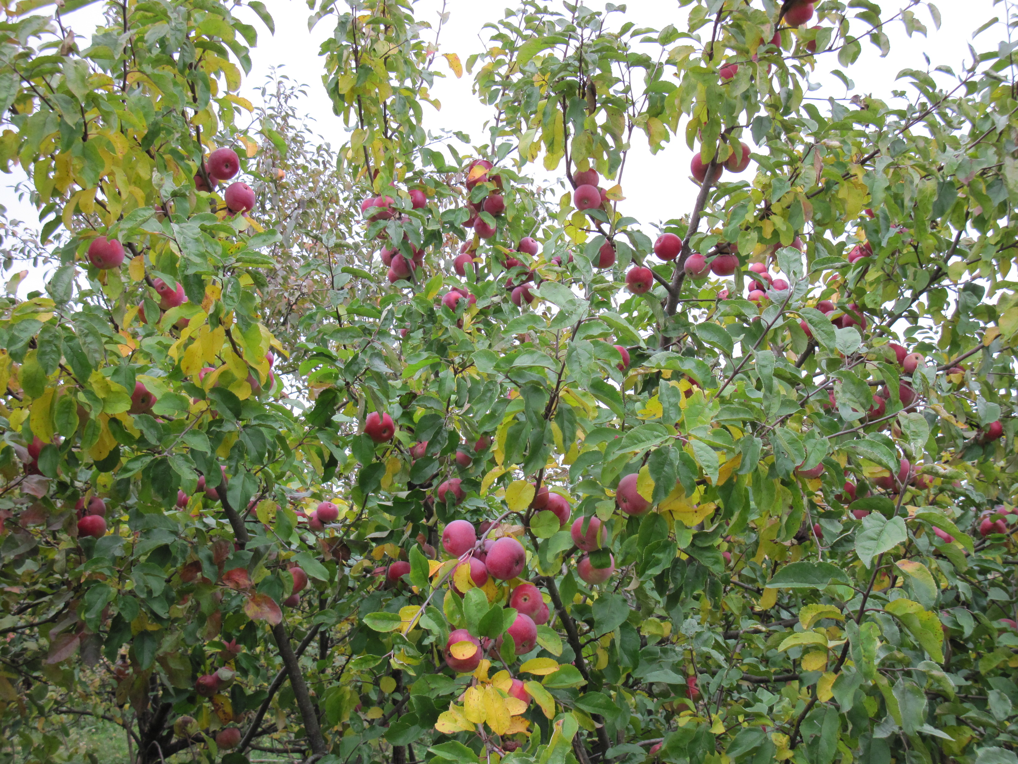 У меня она давно, но только в прошлом году стал использовать стремянку для снятия плодов. Это в 2014 году. Тогда стояла сильная засуха. Плоды созрели раньше. С верхней части снял, боялся осыпания, оставил середину. Листья стали желтеть и сыпаться. а плоды по-прежнему крепко продолжали держаться.