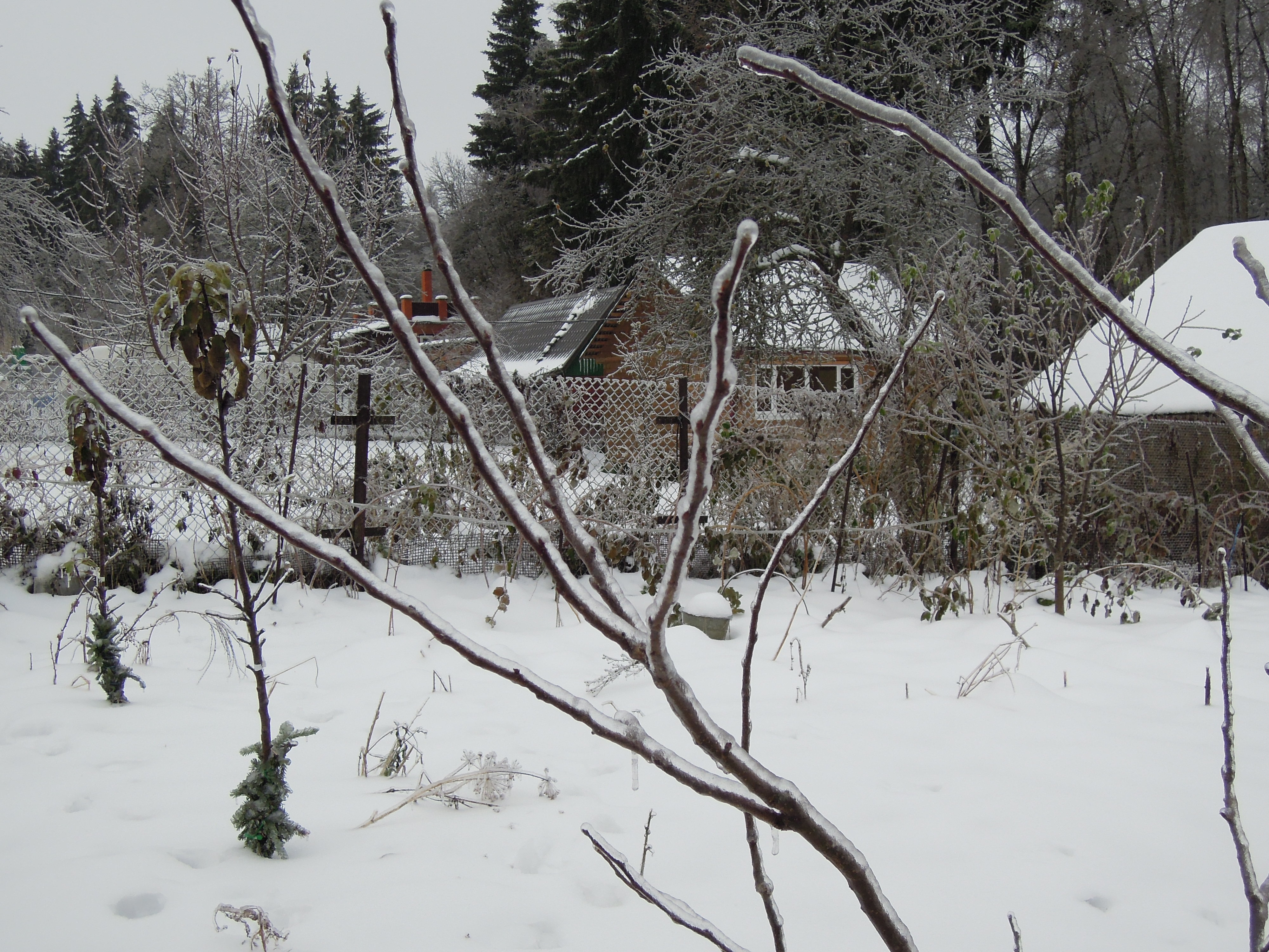 Мои яблони, груши и смородина ушли в зиму с листьями. Вот снимки после ледяного дождя в ноябре 2016г: