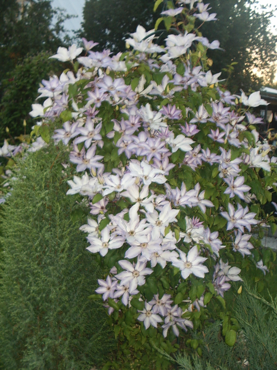 ДочьЖени, Пиллю цветет очень обильно, и с самого низа. А на старых побегах он дает махровые цветки, но я все клематисы обрезаю, и у меня махрушек не было.